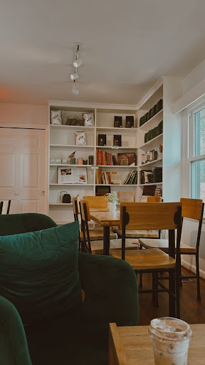 The shop is a house converted into a business. The inside was very clean and somewhat minimalist. You are able to walk into other rooms/areas of the business as well. One of the rooms had. small arcade machine, a couple chairs, and a table. Another room had. larger table with more chairs, maybe better for a group of friends to hang out in.