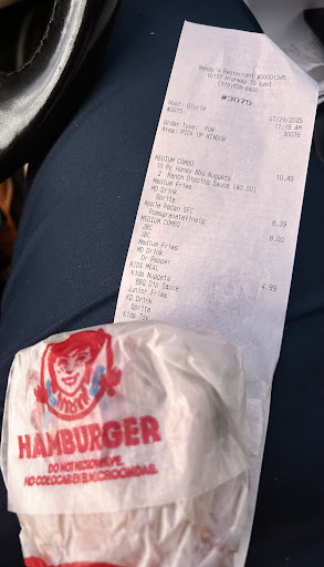 Read moreJust left Wendys ,haven’t been in awhile but tonight decided to stop by grab food for child and I . Asked for things in this order : I need a Jr bacon 6piece spicy nugget spicy chicken sandwich just the sandwich and a med strawberry lemonade and a med coke employee say 19.00 (not sure the change) and proceeded to say “she shoulda got a biggie bag 😳 so I’m like I thought fast food suppose to tell you hey you can the biggie bag cheaper etc .Get to the window and it’s Ms.Minnie(which was shocking when it’s HER STORE) again she say total ..I said let me get the biggie bag you was just talking bout she had the craziest look on her face and said you want me to clear this whole order I said yes mam’ smh she comes back to the window with another total of 17.00 and some change so I ask what did you do if I want the biggie bag that’s $5 smhhh so she then takes everything out of the bag the 6piece spicy and gave me 4piece and not with the drink of coke new total is 11.84 got my change of 8.16 back without no receipt I asked and another employee grab a ticket she say that’s not hers and started typing things so I’m like how did I get the total of 11.84 without you printing ….only shows how that stealing out of them registers be the own mgrs in these stores . She’s at the window with employees in there under her another flag to...