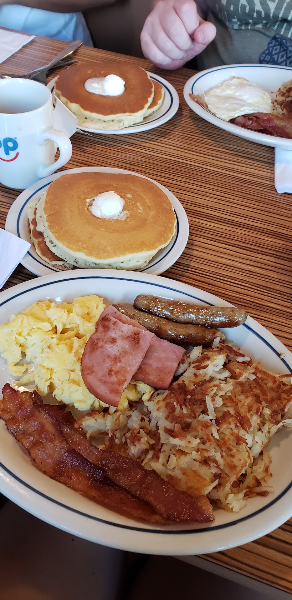 All of the food was well done. The pancakes are a bit smaller than what I've typically seen at IHOP, but the quality and service was much better than what I've typically seen at IHOP as well.