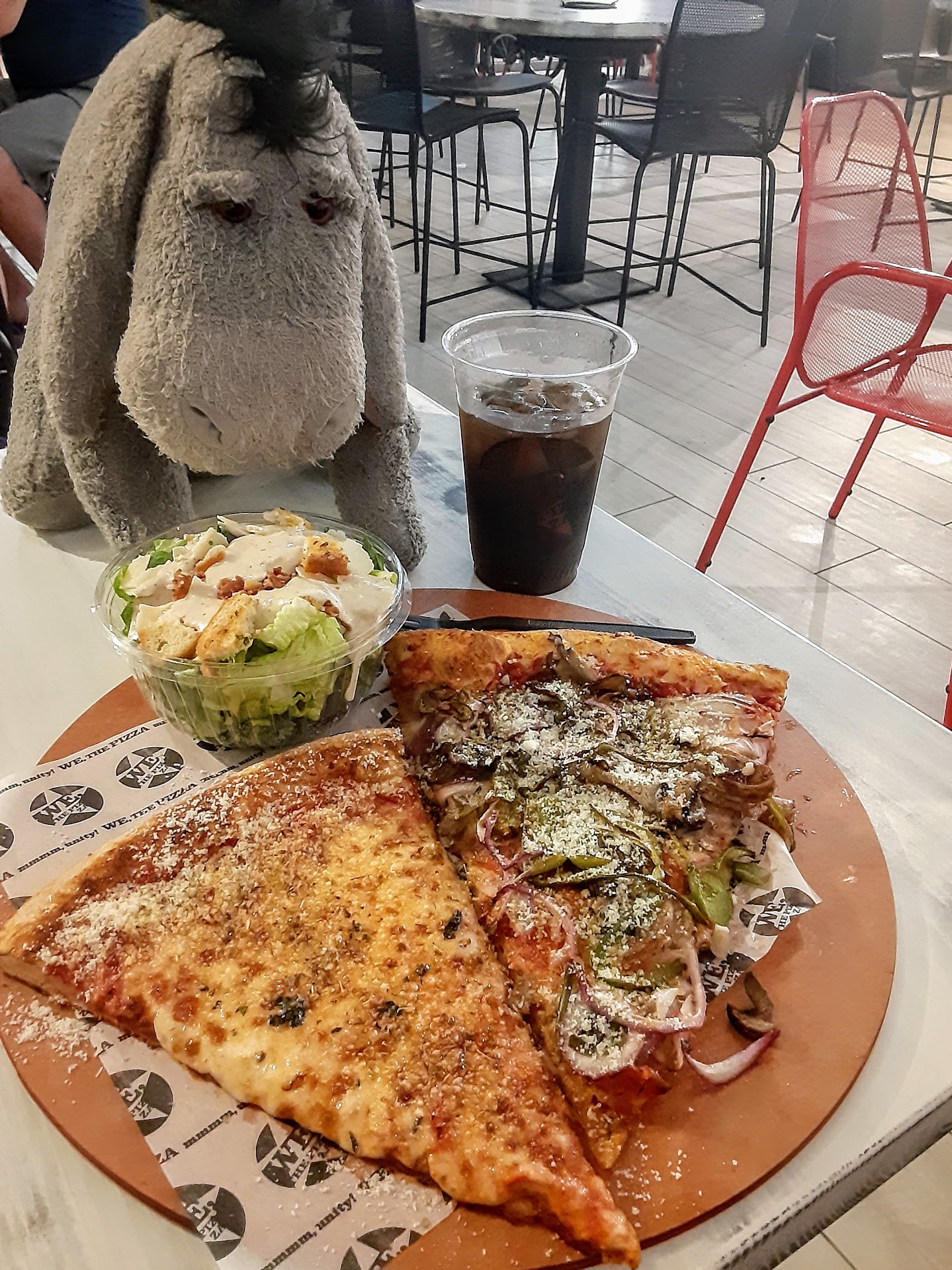 Pizza and this region of Florida are two things that do not work. So this review simply is comparing this newer place on Clearwater Beach to other local pizza. This is no northeast quality pie that will compete with those found in NY or even NJ for that matter. So forget about finding that around here. But when compared to other NY Style pies in the local area for a beach resident. This is my go-to place. Grab a slice or a whole pie. If you like NY Style this might be a place for you. There is a thicker Sicilian Style option but I have no interest in trying that option. From the Captial Supreme to the simple Cheese, these pies are alright. And the salads are excellent too, although small for the price. But they are fresh. The wings are pricey, but then wings are costly everywhere now. The hot wings here seem hit or miss. One time I was blown away with goodness and another time they were a bit soggy. So give them a try if you crave wings enough to pay the price. Eeyore approves of this place for pizza and salad. Eeyore also likes they appear to keep the place cleaner than the other surrounding...