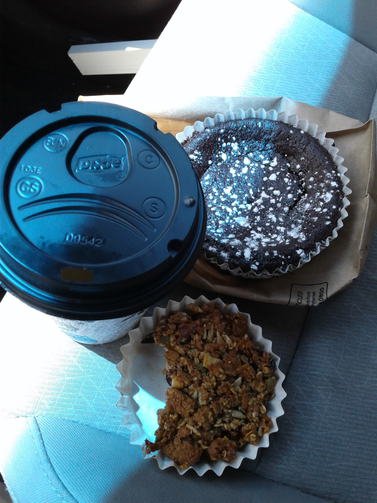 Second try: chocolate-blackberry bread. It was dense, like a rye or some other heavy grain (they use sprouted grain flours), also not overly sweet. The chocolate is dark, or at least a quite darkish semi-sweet, and there's a good amount of it- not too much or too little. I only got one berry, but I also only cut a very small bit off the end of a rounded loaf so there are probably more in the interior. I won't take points from Hufflepuff for that. This one I also had plain; jam might be a good addition. I'd happily buy it again but it paled just a wee bit in comparison to the carrot bread, which was awesome.