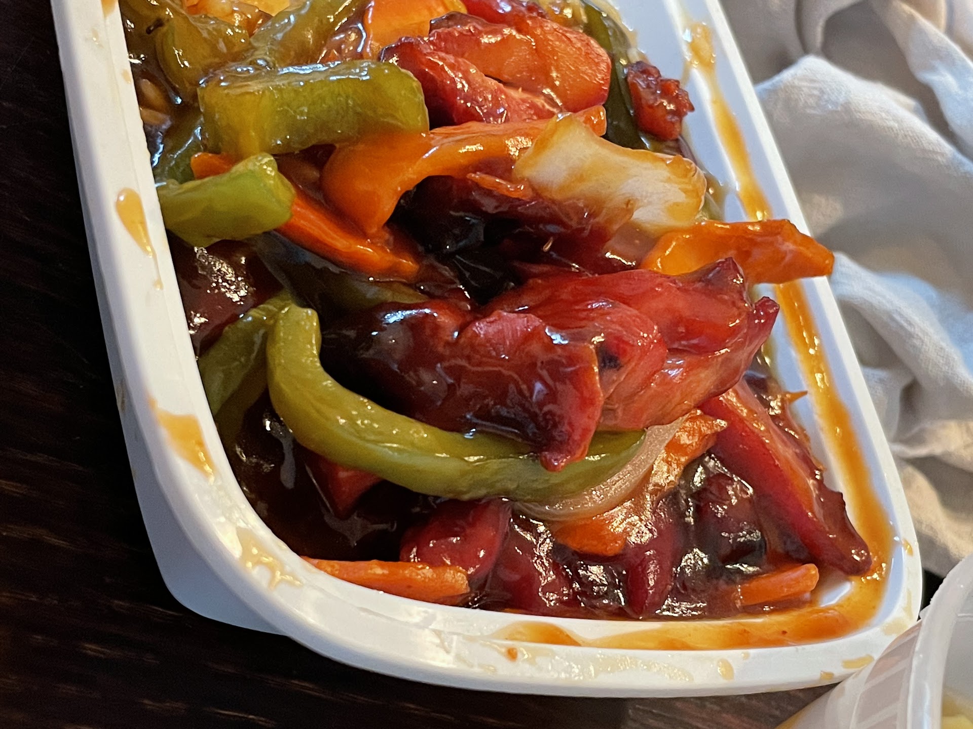 The sweet and sour chicken was filled to the brim with chicken and other ingredients but my father who had it said it was terrible.