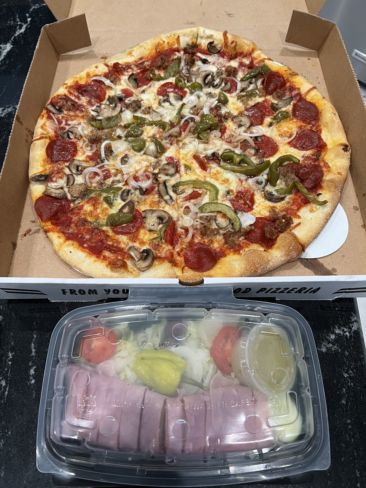 Read moreAs I am always on the hunt for the best pizza place in the area and was hesitant to try this pizza place after looking at the pictures in the review. I looked at the prices on line and it seem reasonable and that was why I decided to try it. I called for a pick up. I ordered a 16” lSupreme pizza and antipasto salad. She said 30 minutes.