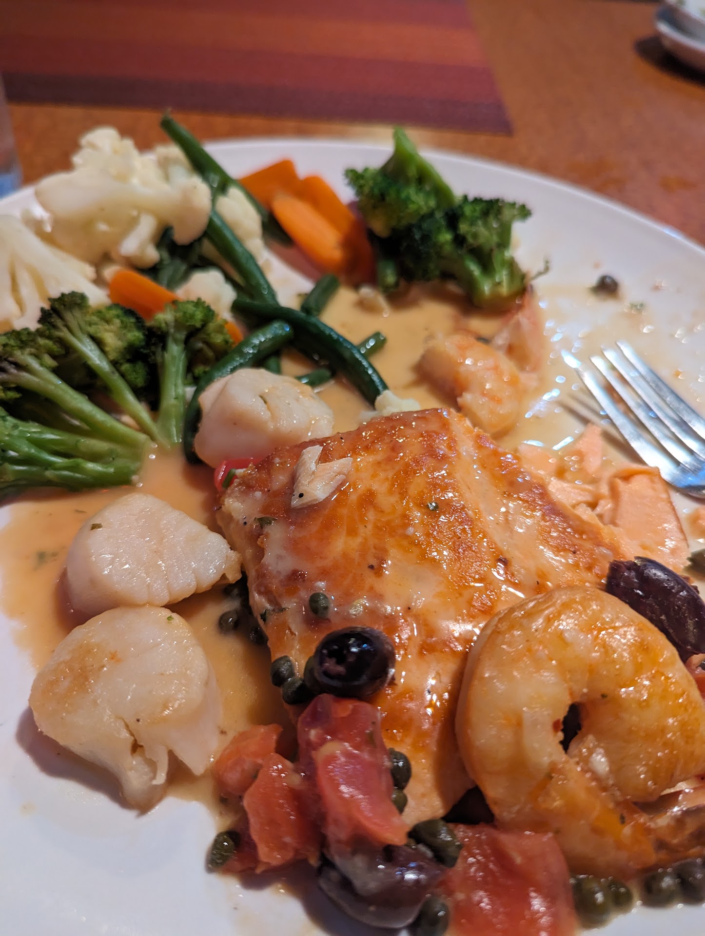 Veal Piccata: My wife ordered this entree. It had the same 4 gyro meat like slices of veal, bathed in their lemon butter sauce and capers. Although we tried, we could not taste any butter, or any lemon or any capers? There was literally no taste to this meal! Her side dish was regular spaghetti and sauce. This was the best thing presented to us, after copious amounts of Parmesan cheese were added.