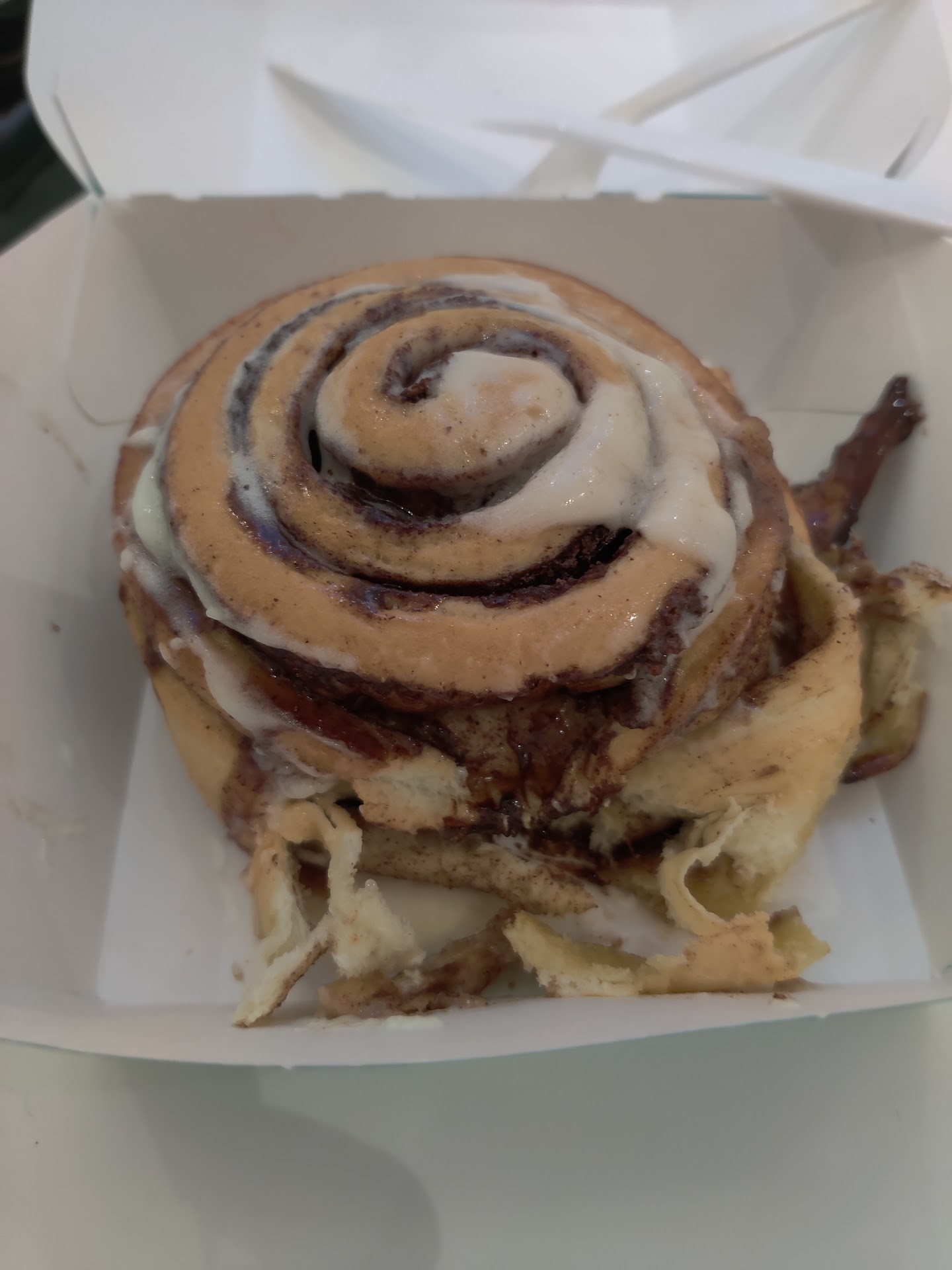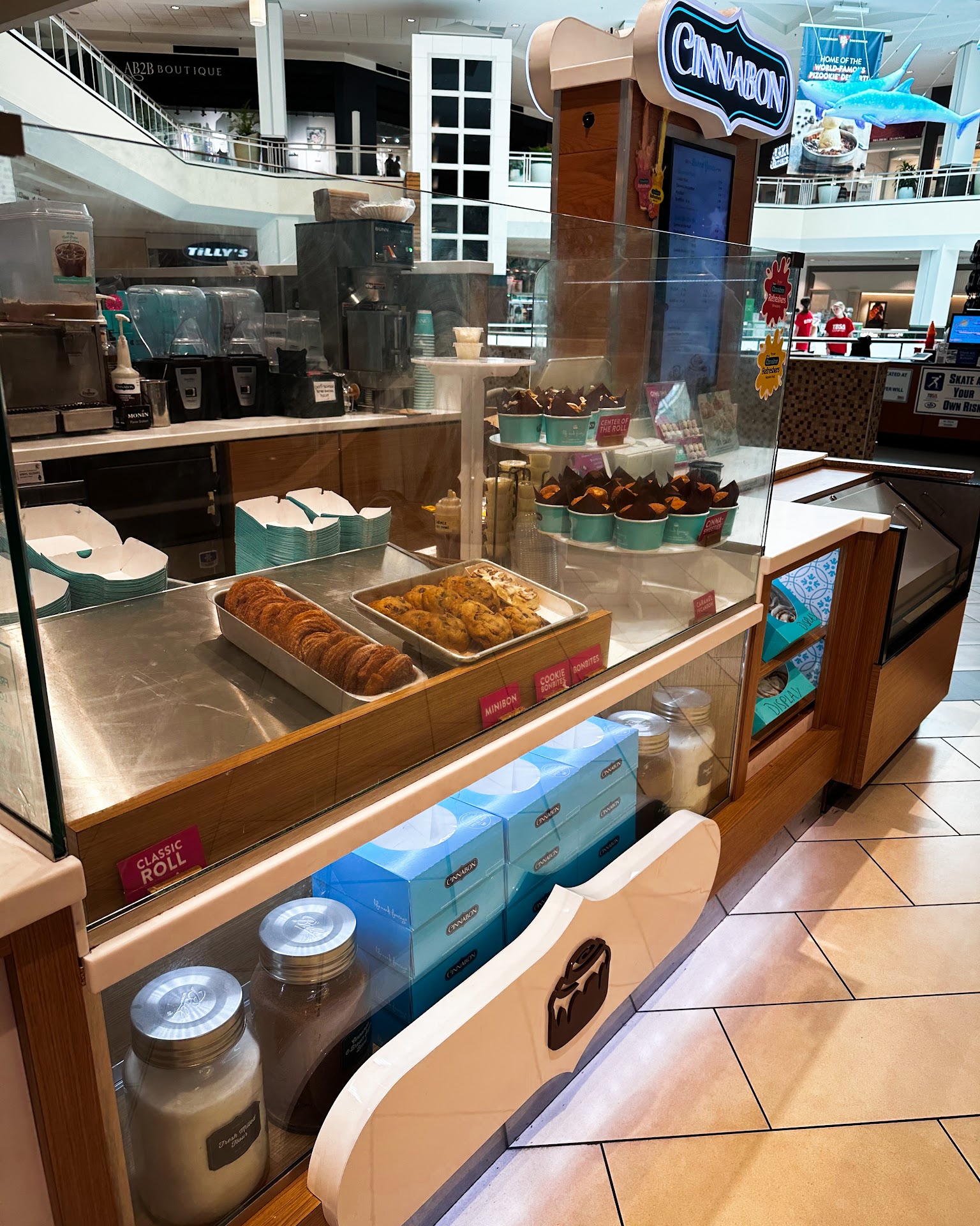Read moreOn this day 11.08.25 I went to purchase one regular sized cinnamon roll, the cup in Cinnabon center pieces and 1 Iced lemonade. The 2 workers behind the counter in my opinion shouldn’t be working together the girl was being instructed to do her duties and she’s rolling her eyes catching an attitude with her peer. He even looked uncomfortable and when we noticed her attitude he redirected himself and said “well I’m just telling you for future reference is all I’m sorry” all while servicing me causing her energy or attitude that was towards him or she brought it onto me eg: I can take your order over , Is that it or what else ? not focusing not communicating very short with smart / quick responses she almost spilled my drink twice. They didn’t have any forks either. I didn’t leave a tip and I’m a healthcare worker it’s instilled in me to have customer service and be nice no matter what’s going on. Also the food I ordered over and undercooked it was super doughy in the middle and the center pieces item had been sitting out for quite some time. I go to that mall all the time and it’s never...
