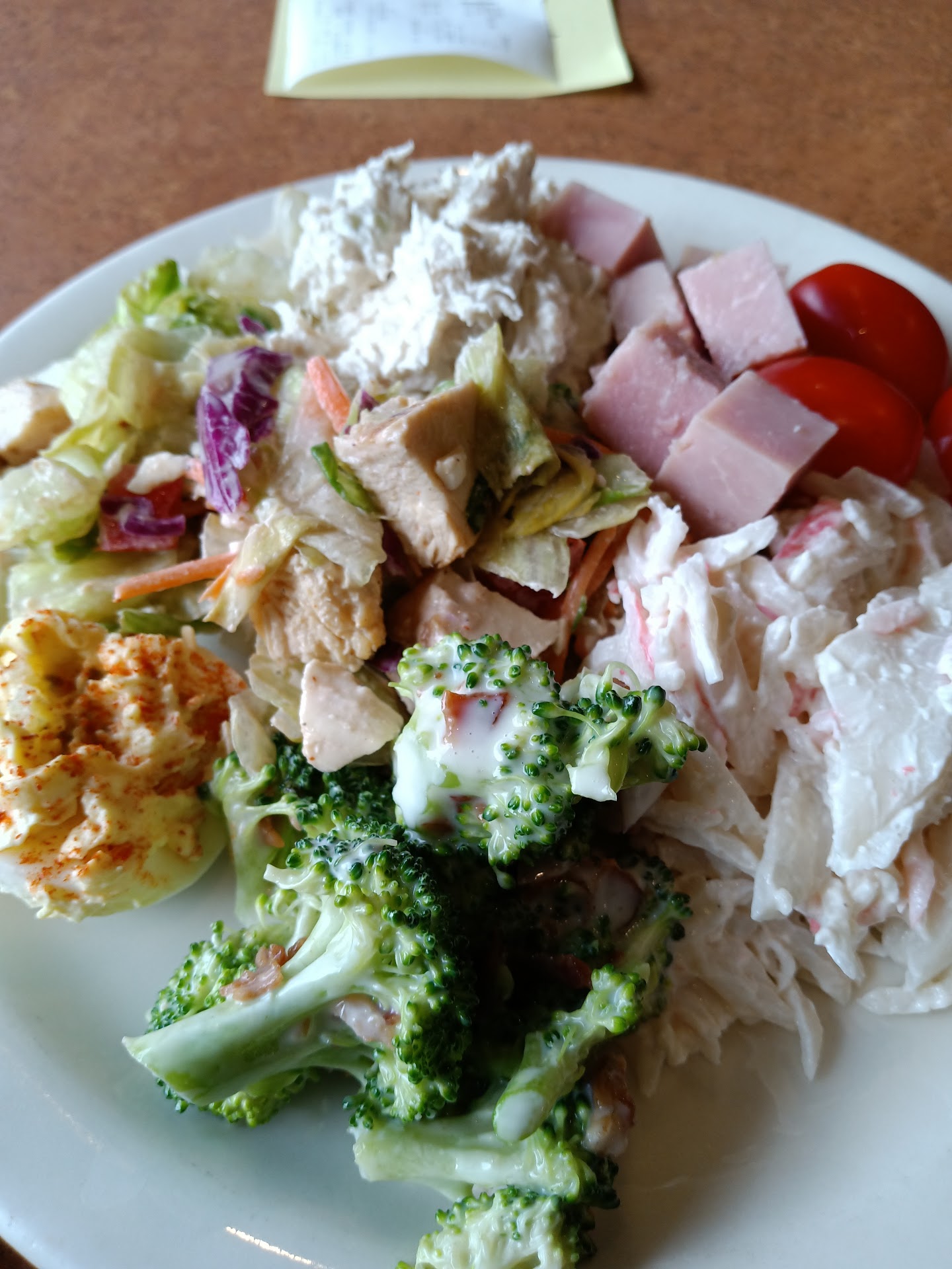 The salad bar was nice had a lot of features, the bacon wasnât bits type of time. Had nice protein options and dressings.