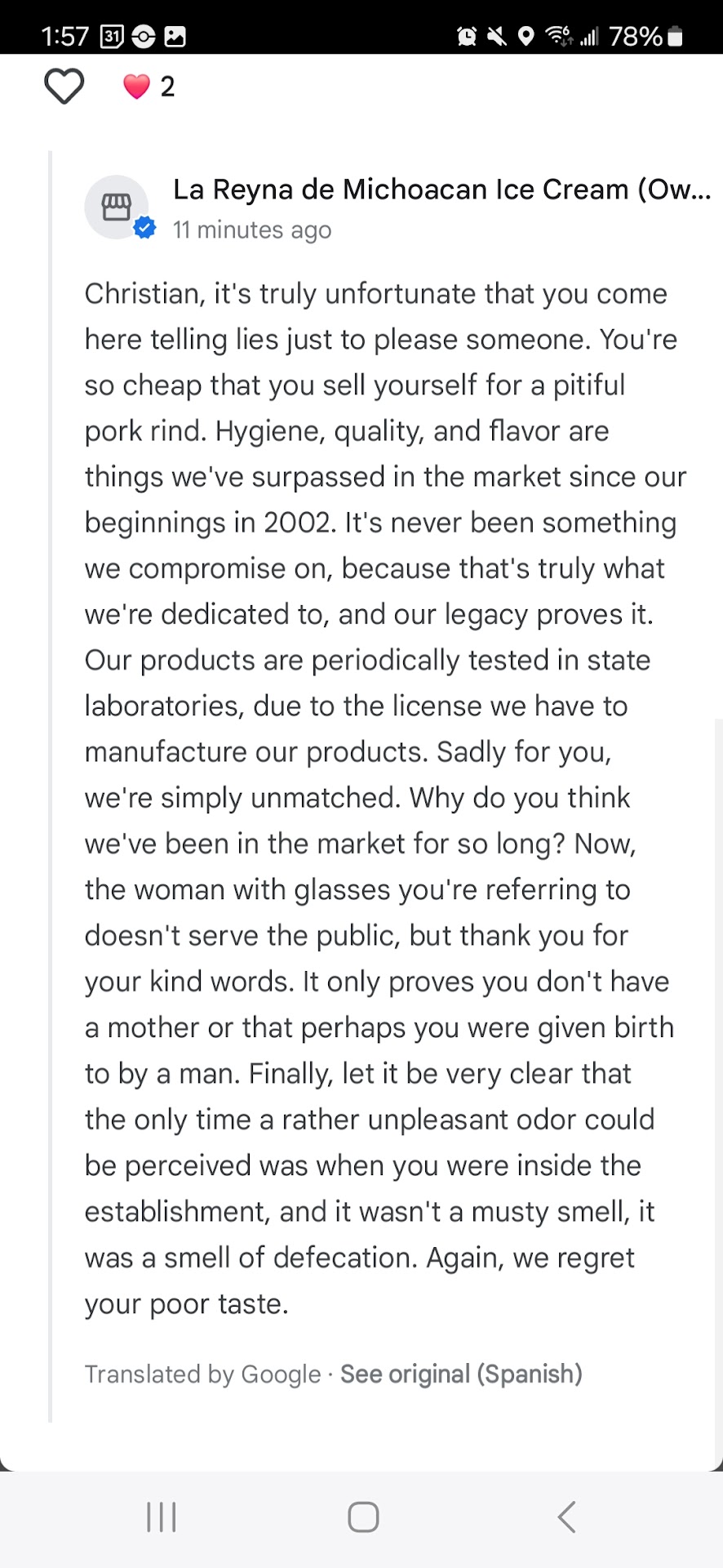 Thank you for your dramatic and inappropriate response. Instead of addressing the concerns I raised — such as the strong, unpleasant odor inside your shop and the unfriendly service — you chose to insult me personally, questioning everything from my integrity to my birth. That speaks volumes about your level of professionalism.