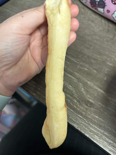 Got the pizza home in minutes (we only live a half-mile from this location), and yep. The pizza was now basically cold. Not only that, but it was also pretty overcooked, so that even the middle pieces are super crispy. The timestamp on the label, right beneath "make new order thin crust pizza," and "Italian cheesy breadsticks," and "dark gray car," says 20:24. That means we sat waiting on this pizza for nearly 30 minutes - and would have ended up waiting longer, because it didn't look like anyone was going to walk outside. It's not like anyone at the window gave us a timeframe or directed us to come inside, or we would have.