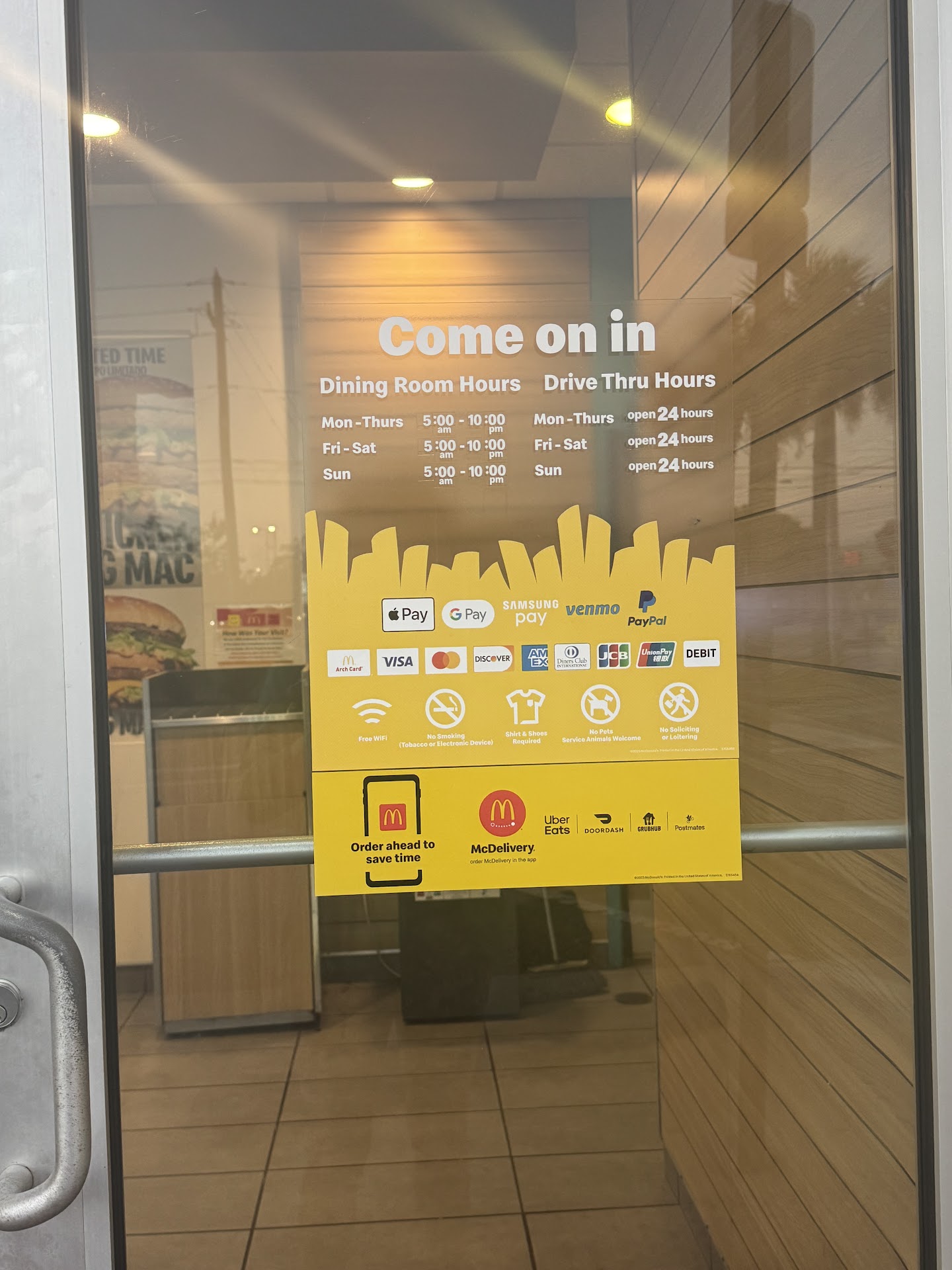 Read moreMy wife purchased 2 quarter pounder meals. She asked for no onions. ( onion allergy) It had onions. WE HAD OUR SALES RECIEPT & ALL THE FOOD! WE WANTED A REFUND! THEY REFUSED!If my wife didn't notice the onions she would have become very ill and COULD HAVE DIED! The store manager Arron assistant mgr. Daisy did not even say we are sorry sir. Instead they were EXTREMELY RUDE WITH DISGUSTING LOOKS ON THEIR FACES. Acting like I was a criminal telling me " How do we know where this food came from!!??? I said I have a sales reciept!! It had the store name and adress on it! The time the order was done and everything!! Apparently that didn't matter. I have never seen any kind of store or restaurant that if you return a product for any reason and you have the sales reciept you cannot get a refund. I called the corporate office. The explanation was an individually owned franchise can make their own rules. Bewildered as I've been a manager of a large luxury hotel franchise where YOU MUST FOLLOW FRANCHISE RULES I asked well does that mean they can make up a new hamburger called Steves sloppy venison burger and use deer meat? Apparently they can. I asked that means they can use any hamburger bought from anywhere and call it McDonalds? They said well there are guidelines but yes!! I was stunned! I thought McDonald's had a policy of thr customer is always right. Apparently the owner of this McDonald's is so greedy that once you hand them your money TOUGH LUCK if they make a mistake or almost put your love ones IN A HOSPITAL FIGHTING FOR...
