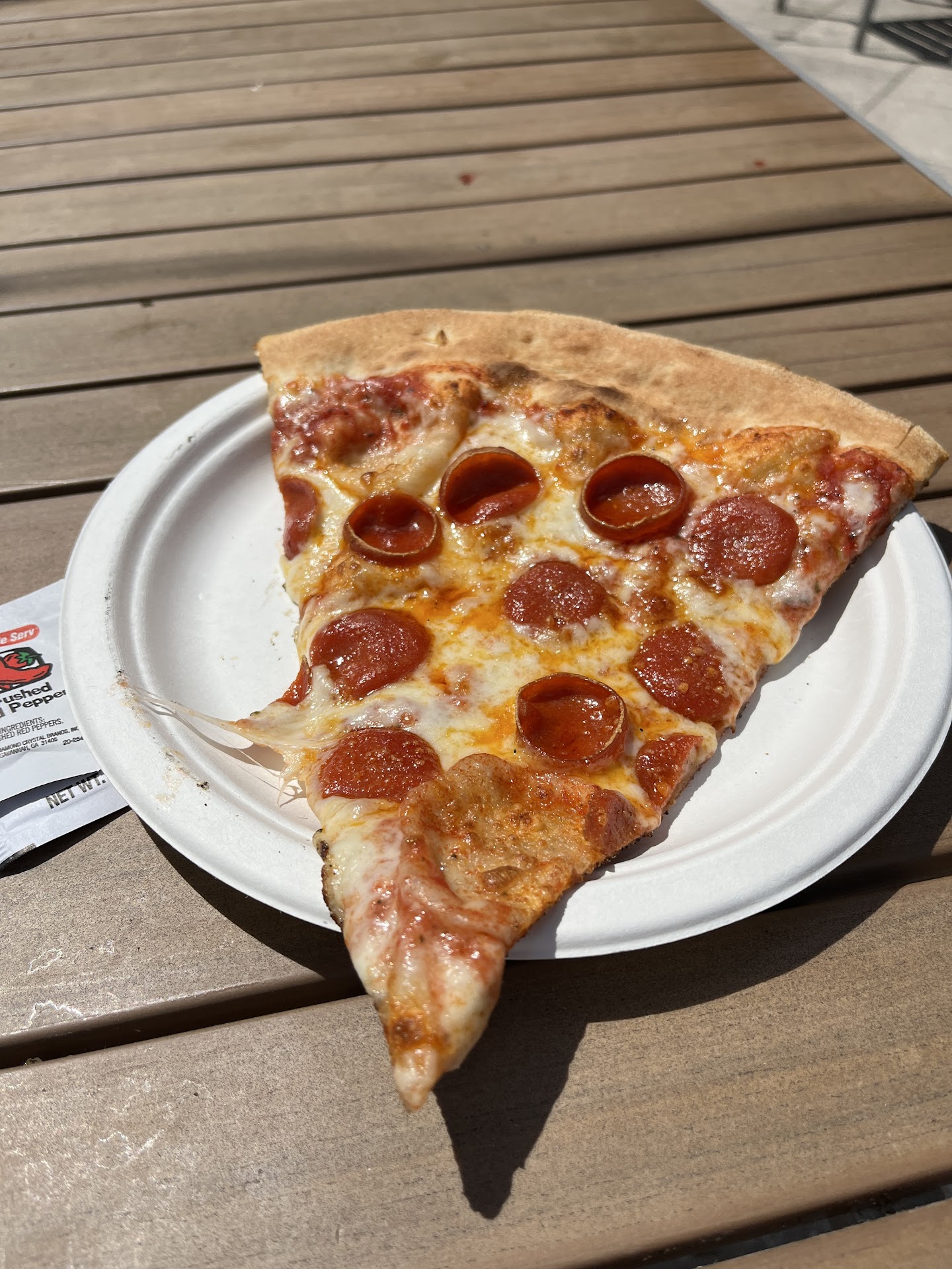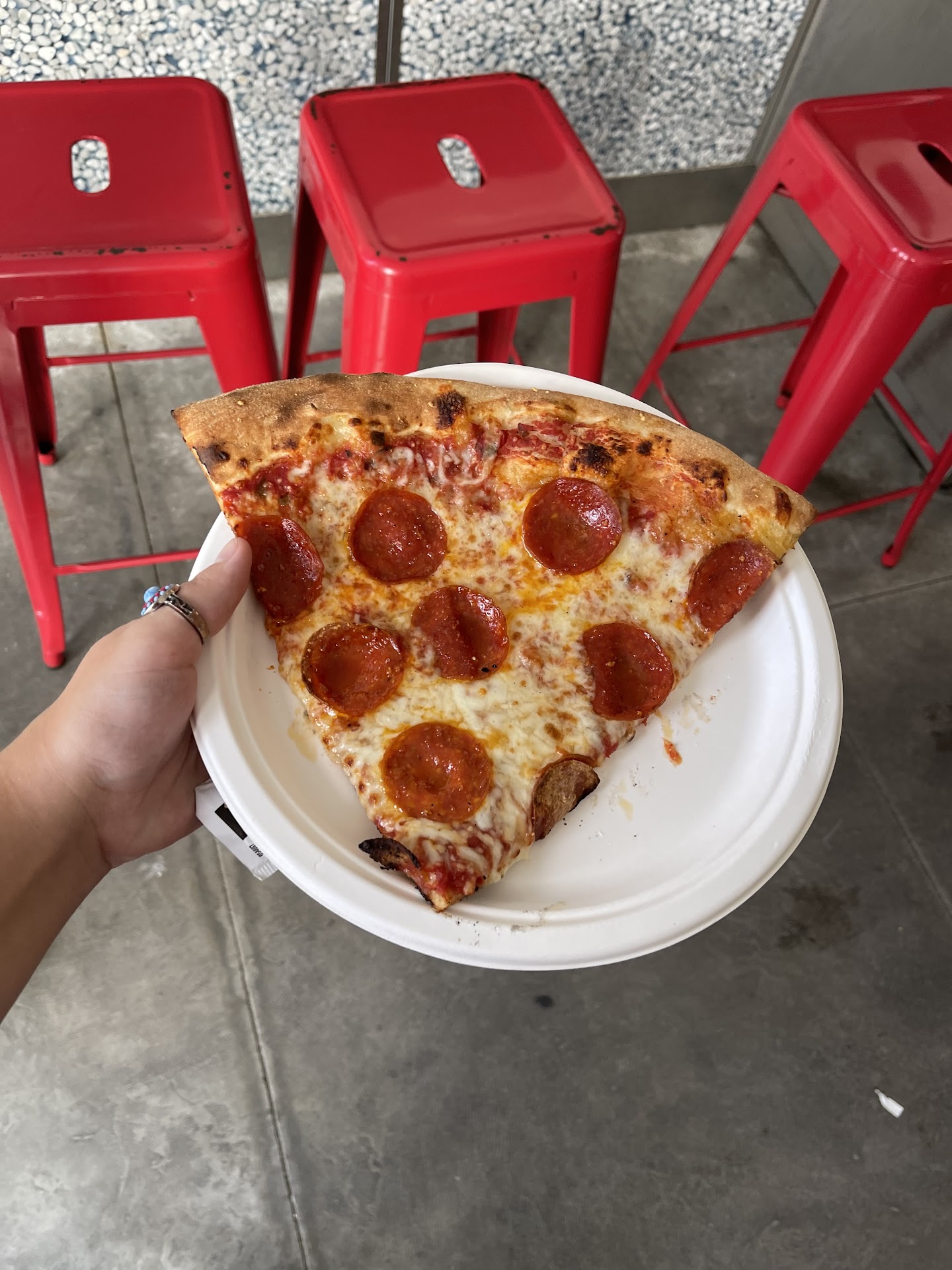 We are pizza connoisseurs and this pizza was delicious. 10/10 would eat here again. They also serve pizza by the slice. This is a happy medium between New York style and thin crust. They have light cornmeal on the bottom of the crust. It’s very light and a...