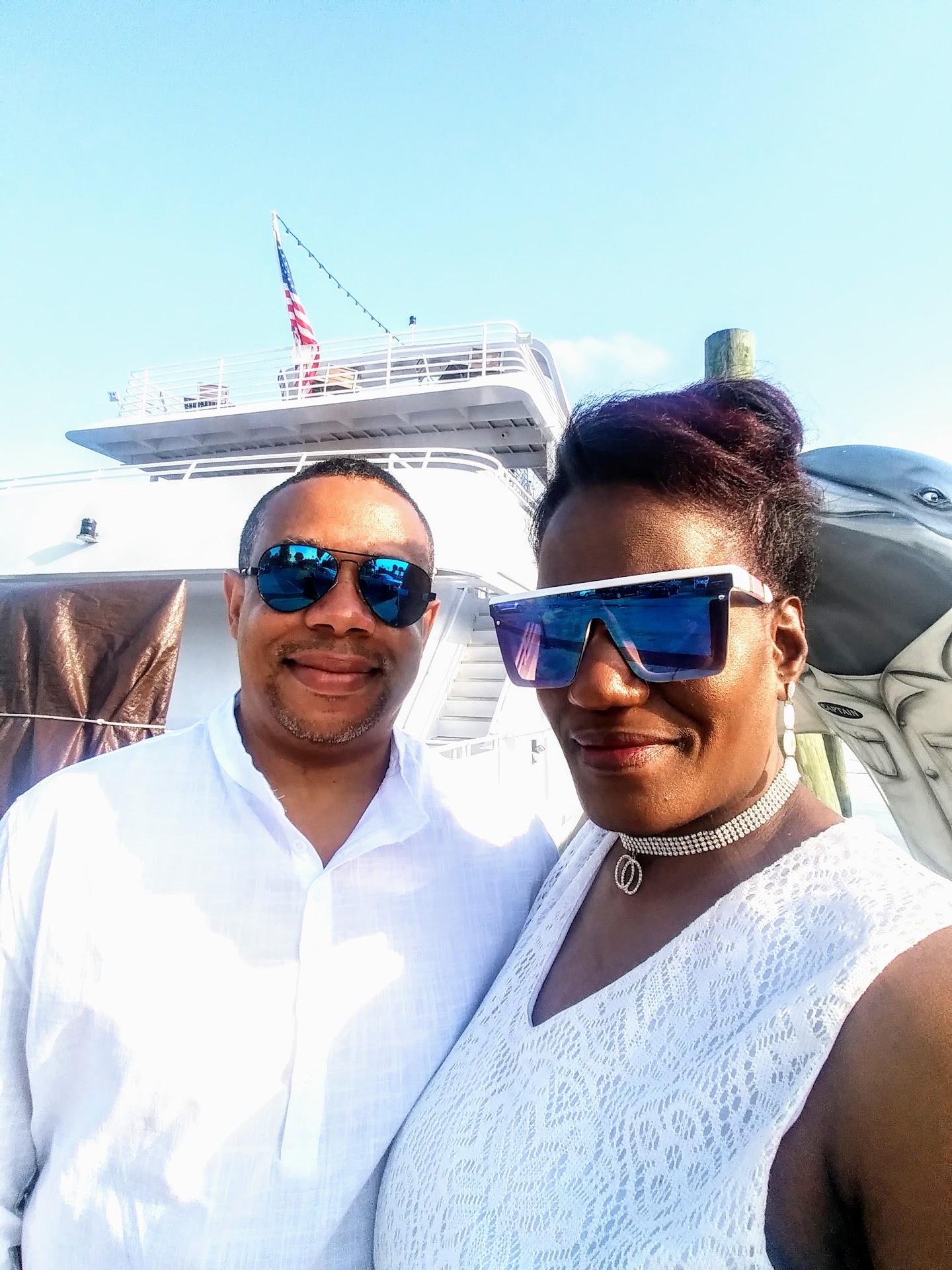 Took a dinner cruise with 3 other friends for our friend's birthday. Boat departs from Clearwater Marina at 7pm and returns at 10pm. The Captain I believe (he was dressed like the Captain) greets everyone at the gate entrance ,collects your ticket and then has you stand with your group for a photo that you can purchase at the end of your trip. I believe it was $30 (not exactly sure) and comes in a Starlight Majesty foldable binder /souvenir type frame. There are 3 levels so if someone in your party is disabled or has trouble climbing stairs I would ask when purchasing tickets to be sat on the 1st level. The stair cases are fairly wide ,with large steps and hand rails though so getting to each level from inside is not difficult but there is a winding narrow staircase as you enter that is much harder for someone that isn't in great shape or in heels. Upon entering , the cabin's air conditioning was very good (unlike other lunch cruise boats we have taken) and you are accompanied to your table and have water and a lemon wedge waiting. Our server arrived immediately and introduced herself and told us Entree orders would be appreciated as soon as possible and appetizers and drinks could be ordered and they would be right out . We ordered several cocktails and appetizers and they came out fairly quickly . The atmosphere was very nice. They have a small dance floor and dj booth on the 1st floor and plenty of tables that need to be reserved ahead of time . The second floor is also a dining room and has an open view looking down at the dj and dance floor . The 3 floor is the upper outside carpeted deck with seating and a few round high top tables where you can take in the beautiful sunset and scenery and enjoy the ride. The views are stunning. As night fell ,the lit skylines were equally stunning ! Smoking and vaping is allowed up there also (and only on the 3rd level) . After the appetizers they bring out a salad and that was followed by olive oil, seasoning and bread. Right after that the entrees came out . The menu isn't extensive but has Snapper,salmon,shrimp,prime rib,steak,chicken,a vegetarian dish and a pork loin dish to choose from. I highly recommend the pork loin. It melts in your mouth. Entrees are served with a choice of 2 sides . Mashed potatoes,rice and a vegetable. After the entrees were done they bring out a slice of cheese cake for everyone. Also at the start of the trip the dj came around in the beginning to every table and said to let our server know if we wanted a shout out for anyone that was celebrating a special occasion or requested any particular song and she would be happy to fulfill our request. We happened to be seated next to a table who had BB King's drummer celebrating his anniversary (which was pretty cool). For the 4 of us we ordered at total of 8 cocktails,4 appetizers, our entrees ,not to mention the complimentary salads,bread and deserts which was just brought out. Our bill came to $278 not including the tip. We only had 4 people in our party but we did read in the description beforehand that parties of 7 or more a gratuity of 20%will be added. We were all so full by the end of the trip ! Considering everything like the atmosphere, music , dancing, spectacular views ,great food and drinks and great service ,this was a fantastic evening out ! We all had a great time ! Living in the area for almost 30 years and knowing of the Starlight Majesty , we regret not trying it years ago but we will certainly be coming back . The only negative was the tiny restrooms. The girls in our party had to wait to use the restroom due to a full ship capacity and the restrooms only accommodating 1(not sure but maybe 2 people) at a time . The men's room had 1 urinal and 1 stall . Not sure if every level had a restroom. We just used the 1st level . Other than that absolutely no complaints. The ship was clean throughout and all the staff was great! If you have never tried the Starlight Majesty you will not be disappointed! We highly recommend booking a special occasion or just a...