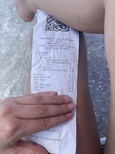 Read moreI just stopped by with my mother to purchase two foot long subs and I was helped by team member #6962. Rude and bad customer service, I asked for my subs with nothing on it and put vinegar and mayo when I asked him not to on both tuna subs. He did it while I got distracted with my toddler and by the time I noticed it was too late to go back as I was headed to the beach. I tried calling the number on the receipt but says that the call cannot completed as dial and disconnects the call. I am beyond upset, I need a refund for this, poor service, no wonder the store is empty the majority of the time. I need someone to fix this and I will make sure I tell everyone I know to never stop by at this location. I love the audacity to ask for a tip and I am more to blame for leaving one as well....