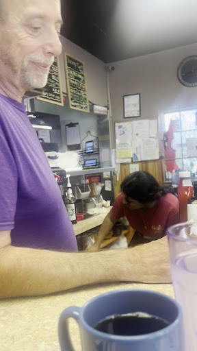 Mixed experience for Saturday brunch. Cute spot on the corner, great location. Diner environment. Got their special Greek salad platter was nothing special, nothing I couldnât have thrown together at home in 5 minutes. Prices were fair. The chicken breast was pretty moist but no seasoning. Very bland. Could have used some Greek seasoning or salt and pepper. I added my own. Coffee was decent. Not great. Like Waffle House quality. My daughter had the waffle with fruit toppings and although she liked it ok, it wasnât great. Prices fair so 2 coffees and 2 simple mediocre entrees for $39 bucks. Stashed under the counter was bottles of log cabin syrup can buy at Walmart. Greek dressing tasted bottled like get at Walmart. The lady at the counter was nice, but there was a male server who we could overhear complaining about everything to her each time when he would come to run food out. It seemed they tried to ignore him and were used to this from him, but it was unpleasant with him doing that constantly especially being so intimately sat at the counter having to hear him each time. Another girl worker stood way close to us just staring standing way too close, there is not much space so the complainer and starer were crowding us. We wanted to like it more. But it also didnât feel clean. When we arrived to sit at the counter where someone had been sitting before we arrived had a napkin and coffee mug there and the lady did a few minimal strokes of a wet rag partially wiping off the counter, it was super packed, seems locals were frequent flyers but not eating as much as shooting the bull over coffees. Not there for the food which kinda made sense. I liked the nice lady at the counter. But outside of that, the food was not great. We saw piles of coffee flavor syrup bottles but we were not offered any just individual half and halfâs. The 3 stars are for the lady at the counter being nice. My daughter did not find it to be at all friendly. And being crowded by the girl the whole time just standing there staring around, the overall uncleanliness and the guy complaining constantly took away from the enjoyment. Our least favorite Clearwater brunch experience in over 2 years. Disappointing after such good reviews. We expected better. We wonât be back. Food wasnât picture...
