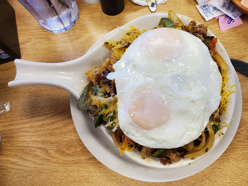 This a small homey diner and obviously very popular with locals. They were very busy at early lunch but we lucked into the only open table for two. We were brought menus and waters right away. My wife chose the Waffle with strawberries, bananas, whipped cream and chocolate. I decided on the Spanish Omelette with beef, onions, jalapeños and cheese.