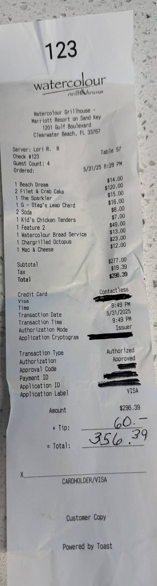 I will not dine here again. And hopefully, no one experiences this like I have today. I had high regards for an upper scale restaurant that is intertwined with a Grand Marriot. And being a bonvoy member, this could have been avoided to train your employees with a better process.