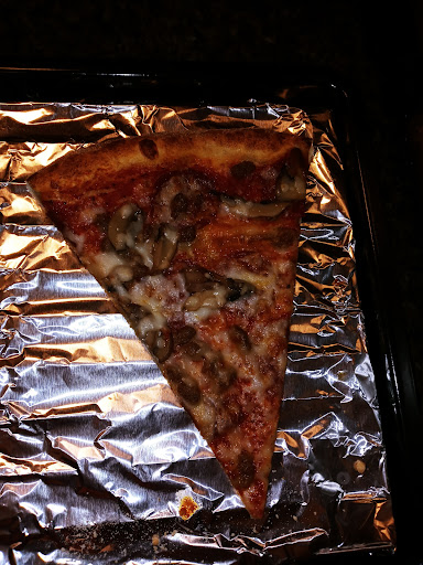 Open the box take the first bite is crunchy as a saltine cracker upon further inspection I noticed that I was basically sold a box of old slices that were aggressively reheated