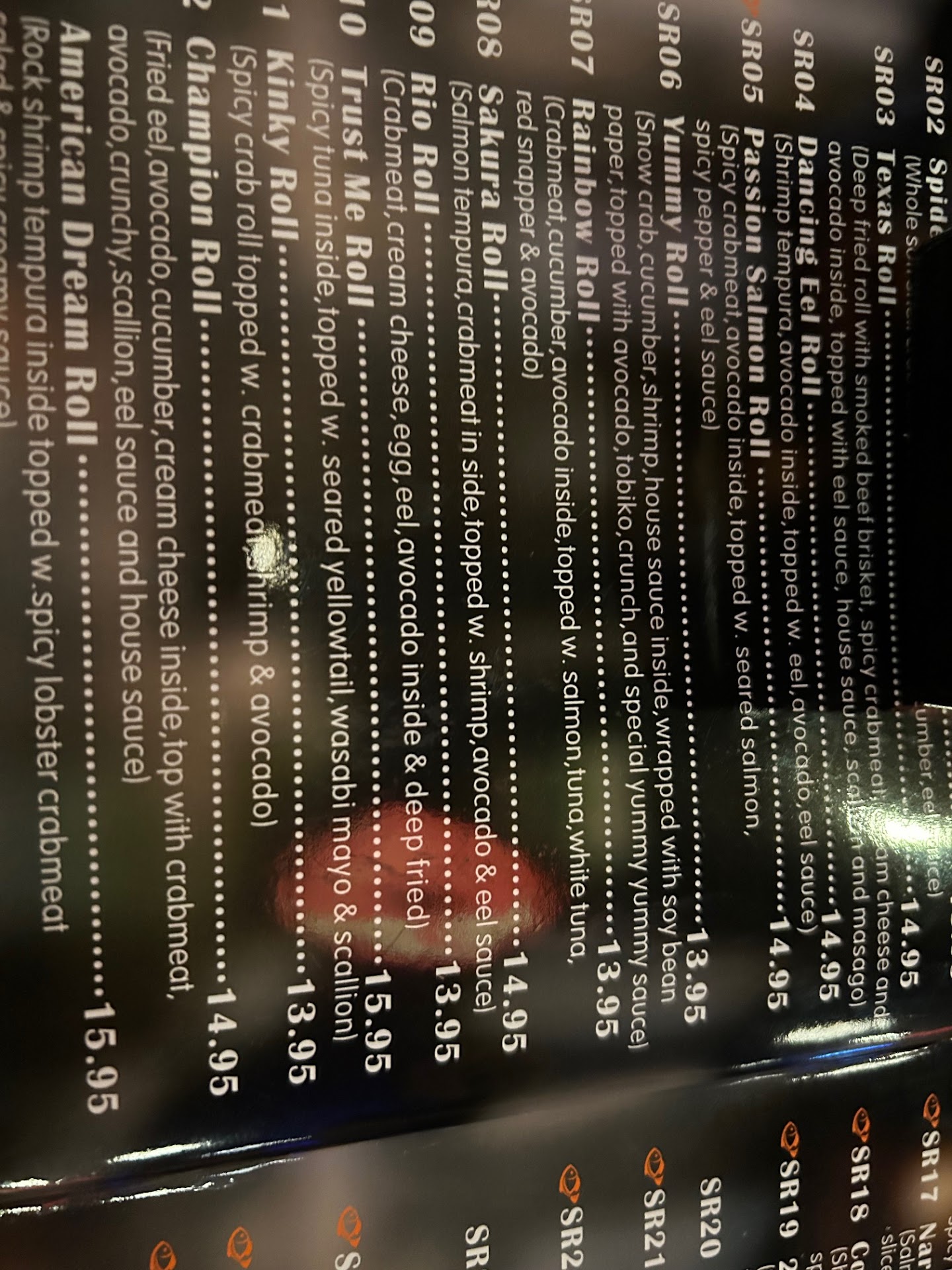 Read moreFISH ALLERGY ALERT!!! Although the menu lists "Crab or Crabmeat" on certain items, IT IS KRAB meat, which is an imitation crab meat that is made with various types of FISH.....and to a person with fish allergies, that misrepresentation could have deadly consequences. My Rainbow Roll was warm when served, the sushi rice had a mealy texture and the salmon, white fish and tuna were far from fresh. Miso soup is usually a good litmus test for a sushi restaurant, so we should have known to leave after the soup was served. It was obviously made from a powdered concentrate and was just terrible. Not only did the "manager on duty" refuse to take the Rainbow Roll off of our bill, she was going to have the server pay for it out of her pocket if we refused to pay! A TERRIBLE BUSINESS PRACTICE and a RED FLAG FOR ALL CUSTOMERS CONSIDERING EATING THERE. The actual owners/manager were called and they acquiesced to removing the charge from our bill and not forcing the server to pay. Our server however was wonderful. She was very kind and understanding and the "manager on duty" should take a play...