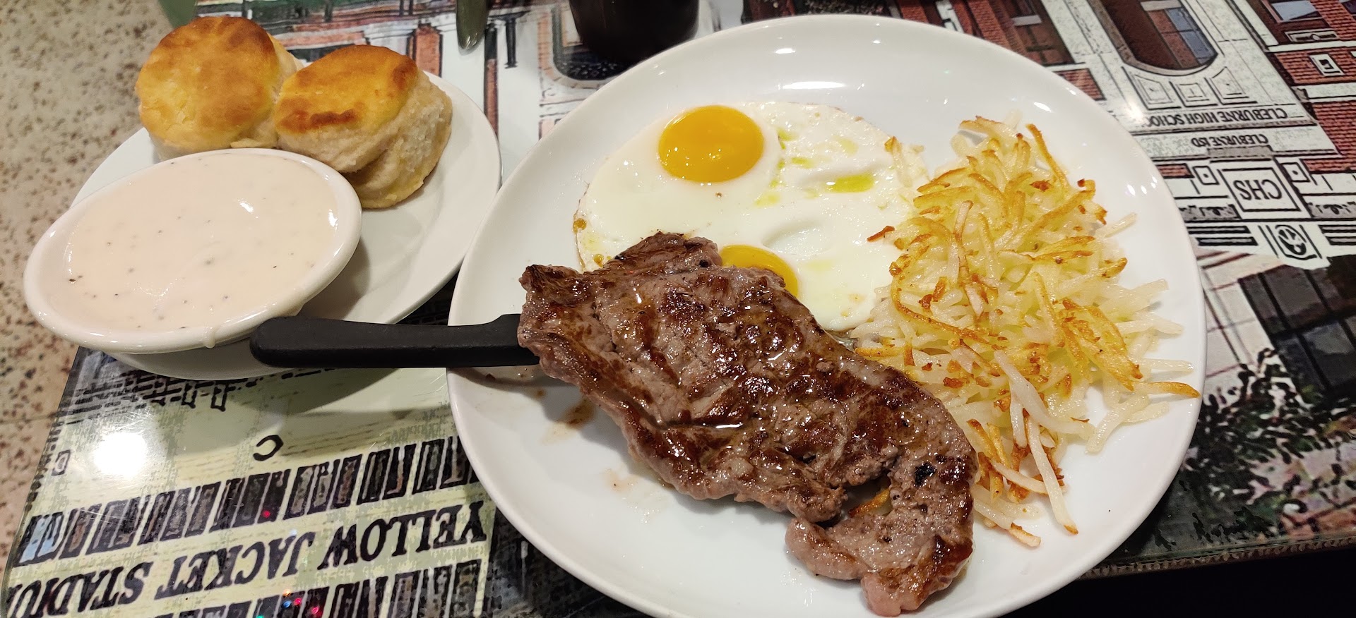 About the prices: I got a 6oz steak, sunny side up eggs, hash browns, and biscuits with gravy for $9.99. Despite that price, there was absolutely no compromise on quality. In fact, it's easily some of the best diner food I've had. It's easy to see why this place has been around for over 100 years. Perhaps it would be wise to drop in to this place before it gets on Guy Fieri's show and they raise the prices.