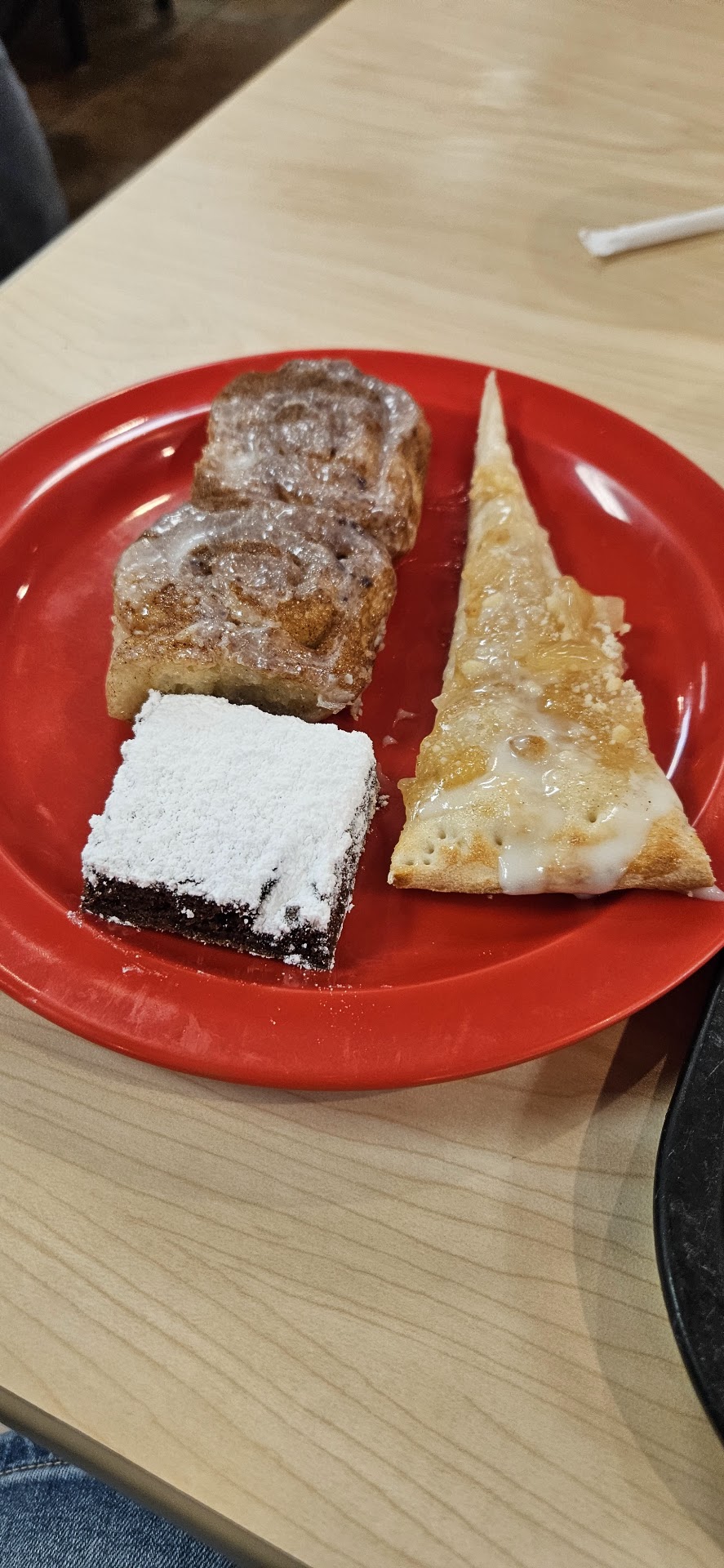 I think the biggest disappointment came from my husband. He usually loves eating there but this time he had only breadsticks. All the pizzas were either BBQ, alfredo, pineapple, or some other weird combination and he won't eat them. Even the marina sauce he dips his breadsticks into was cold. Whatever happened to making just plain 'Ole cheese or sausage or pepperoni pizzas?