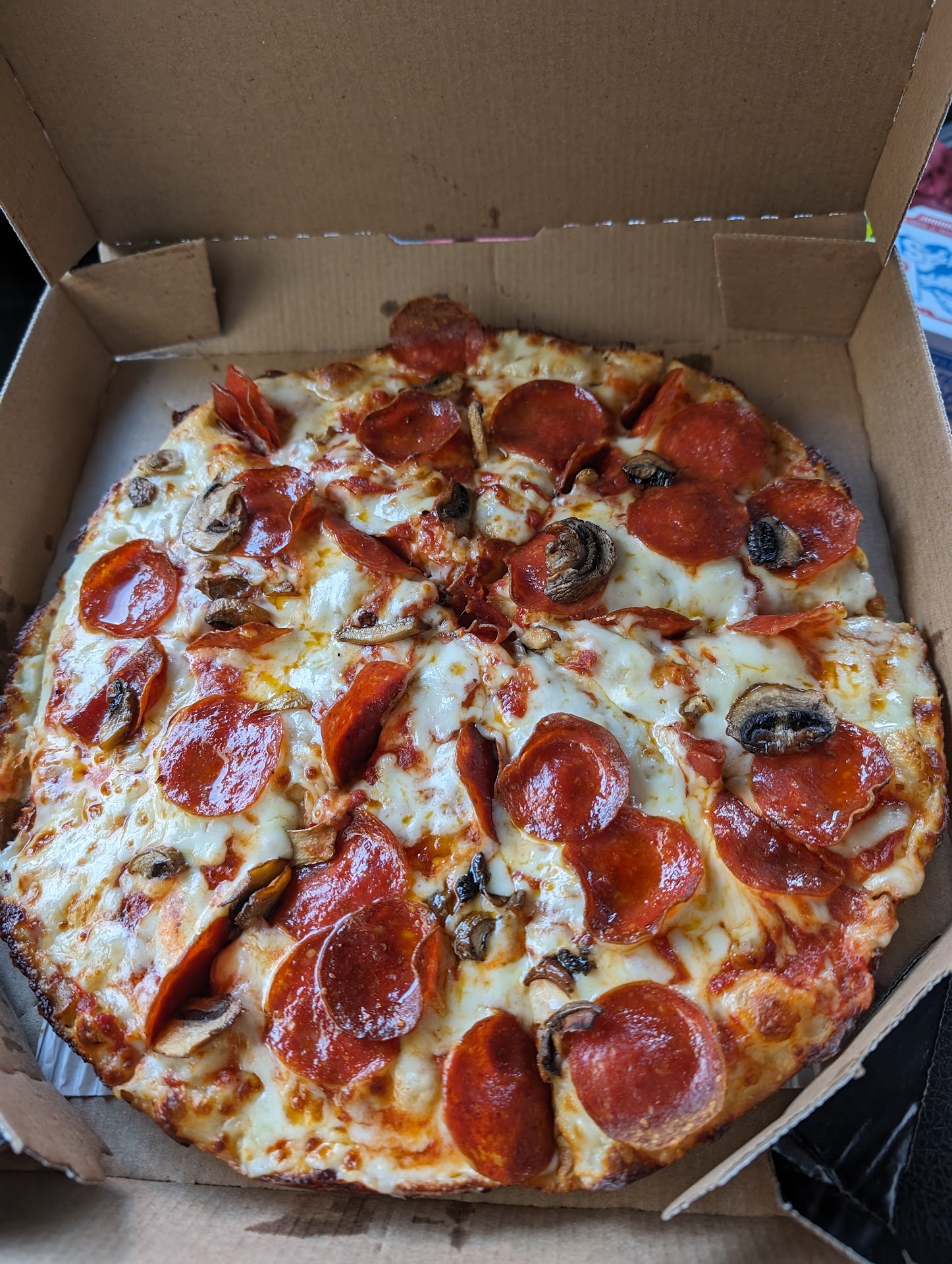 Read moreNo longer a customer. Usually order because no other options, but this order finalized it... put up with horrible customer service, ridiculous delivery boundries and now the almost worst pizza in the county. Tried to order from a business address and was told they stop delivery at the business .06 tenths of a mile away.. BUTT they deliver to the houses directly across the street??? The delivery guy (because I had to have it delivered to another address) was all upset because he had to wait a whole 2 minutes for me to get there.. odd they said 45-50 minutes for delivery, but it only took 15 minutes. Which brings me to problem #3... The toppings on the heated up cardboard-like crust. Supposed to be 2 medium, 2 toppings hand tossed.... well hardly. 1st pizza had almost no cheese, extra tomato sauce and overcooked pepperoni. The 2nd pizza had plenty of cheese almost no pepperoni and was hard. BOTH pizzas appeared to be already cooked and sitting around waiting for a customer.. the was stiff cheese under the melted cheese on pizza #2 and the #1 pizza was only warm. The pepperoni on #1 were curled up as if it were reheated multiple times. In the picture, the slices on the left were #1 and right is #2... they are supposed to look alike, because they were supposed to be pepperoni and extra cheese... Bye...
