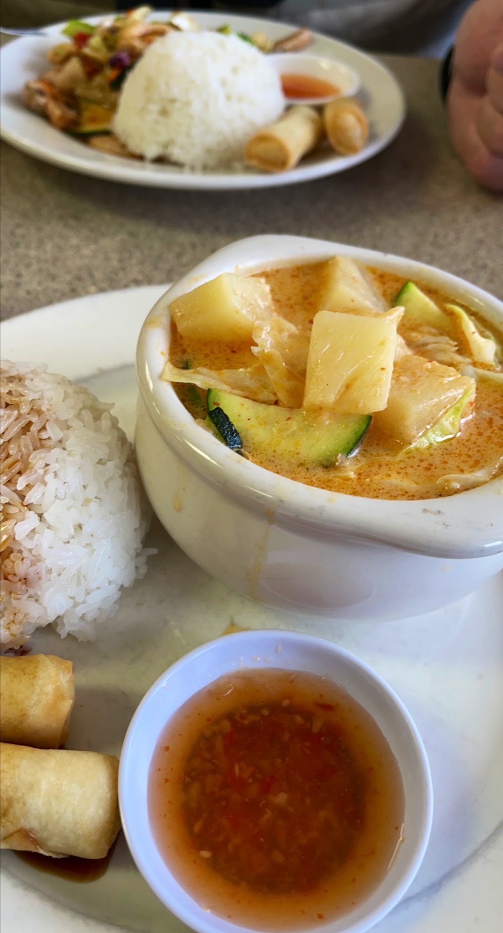 Read moreI've eaten here about 6 times over the past 2 years. It's half-added at best and variable. I have had some dishes that were O.K. but generally it's not worth going to. The green curry medium hot was o.k. as was a great other dishes but NOTHING to seek out as far as TASTY. I just had the lunch Basil thai with chicken, medium. It had ZERO spicyness. I could only see about two flakes of red pepper and zero basil. Yes, none! How can you call something BASIL and have NO BASIL in it? I had the owner take it back and 'redo' it. The cook, either he or his 'Thai' wife added red pepper, but no additional Basil. It was no better. I've ate Thai food in Thailand and all over the U. S and some places in europe. The food here is a poor excuse for Thai food, as a general rule. And I second the comment on the 'BROTH' for soup, and the 'Miniature' spring rolls. Not...