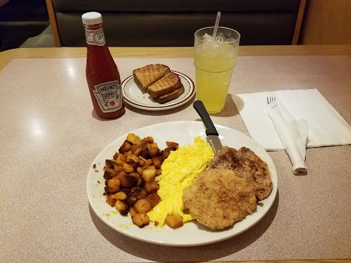 Easy to find with a large parking lot. Big clean restaurant w/several tables & booths. They were busy the entire time I was there eating breakfast the other day. They are also open for lunch & dinner. People were constantly coming in to replace the ones that were leaving. Most of the tables were taken. I'm so glad I found this place & will return the next time I'm in Clemmons. You seat yourself but they do provide table service. Our waitress was kind but very busy. Small breakfast menu but they offered just about anything you could ask for. Biscuits, sandwiches, English muffins, pancakes, French toast, combos, etc. Also they have the largest variety of meat options: sausage patties & links, Virginia ham, bacon, tenderloin, Ribeye steak, country ham, Canadian bacon + many more. My Canadian bacon came with 3 of the thickest & juiciest slices I've ever seen & the French toast was yummy even without syrup & it was enough for 2 meals. The bag that held the 2 breakfast sandwiches I ordered to go were sooo heavy I was shocked. At the end of your meal you take your ticket up to the register by the door to pay & pick up any to go orders. What amazed me the most though were the prices. Somehow this place has managed to keep the low prices that restaurants like this used to have! I was thrilled to find out that the 4 of us ate for just $26! Check this place out...I know...