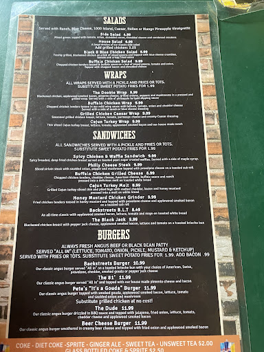 Read moreFor all out there who read the reviews for Backstreets, dismiss all the one star reviews out of hand. My guess would be 99% (possibly 100 %) have never been in the bar. They are just upset the owner doesn't want people to bring weapons into his bar. I guess they think drunk people with weapons is a good idea. Especially drunk college students, which is what the crowd is. Most rational people wouldn't. By the by, the second amendment originally had absolutely NOTHING to do with a persons rights to own/carry a weapon. Most of the one star people probably don't know that either. Good food, great beer selection and nice bartenders. Can you sometimes have to wait for your food? Sure! But you will encounter that at any restaurant that has 30 or 40 people walk in at the same time. People that have never waited tables or bartended don't get that. Service is as good as any place in Clemson! Best bar in Clemson! 2nd amendment rogues people can kma!