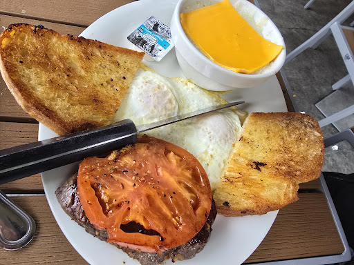 The 3-egg omelette, toast and grits was almost too much for me! Very tasty and done well.