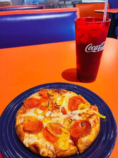 We waited for an uncomfortably, unreasonably long time, with no server in sight. Although, there were plenty of employees walking past us. At this point, we decided it was getting ridiculous and decided to wait on ourselves. We got our pizza from the bar and halfway through our meal a waitress finally came and asked what drinks we wanted. We both had water. Once she brought it, she didn't care to ask if we wanted to order anything, if everything was alright, or anything else. She left the water and disappeared again.