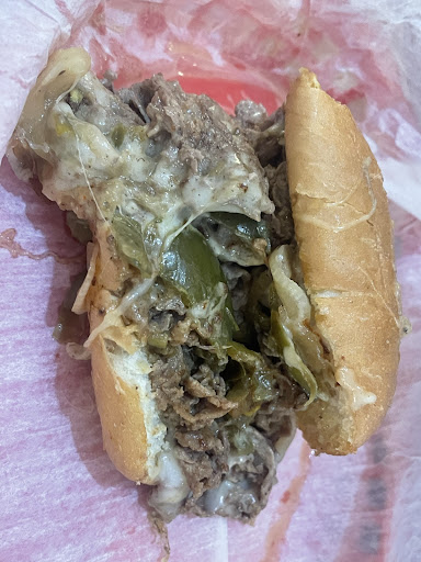 The guys ordered a Philly cheese steak — they added jalapeños to it and split it. It was a good size (not huge but filling w all the meat).