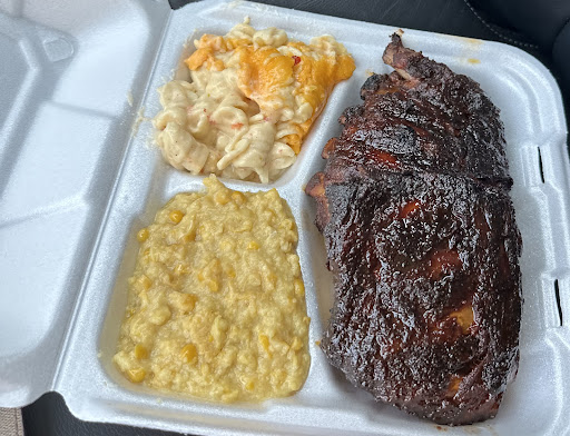 Read moreWow, these folks saw bbq as a challenge and said YES. I swung by today on my way home just to see why I saw so many people getting grubs from this truck in the middle of the blazing hot summer and now I certainly understand. I got the rib plate with a side of Mac and corn chowder, and let me just say this bbq was an experience. Truly divine. Perfectly smoky, sweet and savory. The ribs tender with the perfect bite and that delicious bark smoked to perfection. The cornbread was so uniquely delicious. I can’t even describe it. It’s like it lived with sweet potato crunch for a few years and learned how to speak its sweet potato language while still tossing its corn roots vernacular on the side. My dog was so jealous, he stuck his big hound nose in the trash and ran away with the saucy napkin. I gave him a bite, of course. Definitely will hit this place up again as many times as my waistline will allow for. Stretchy pants...