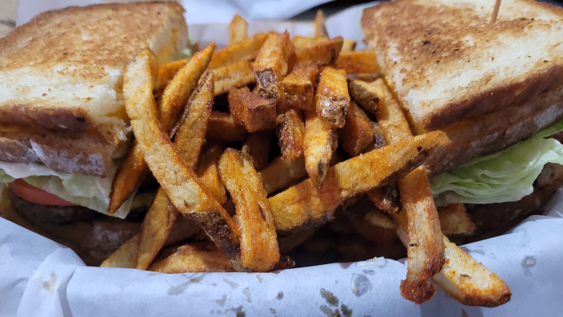 I had "The Paddler" which is a bacon cheeseburger with two grilled cheese sandwiches as the buns with their handcut fries. My newest favorite burger hands down!