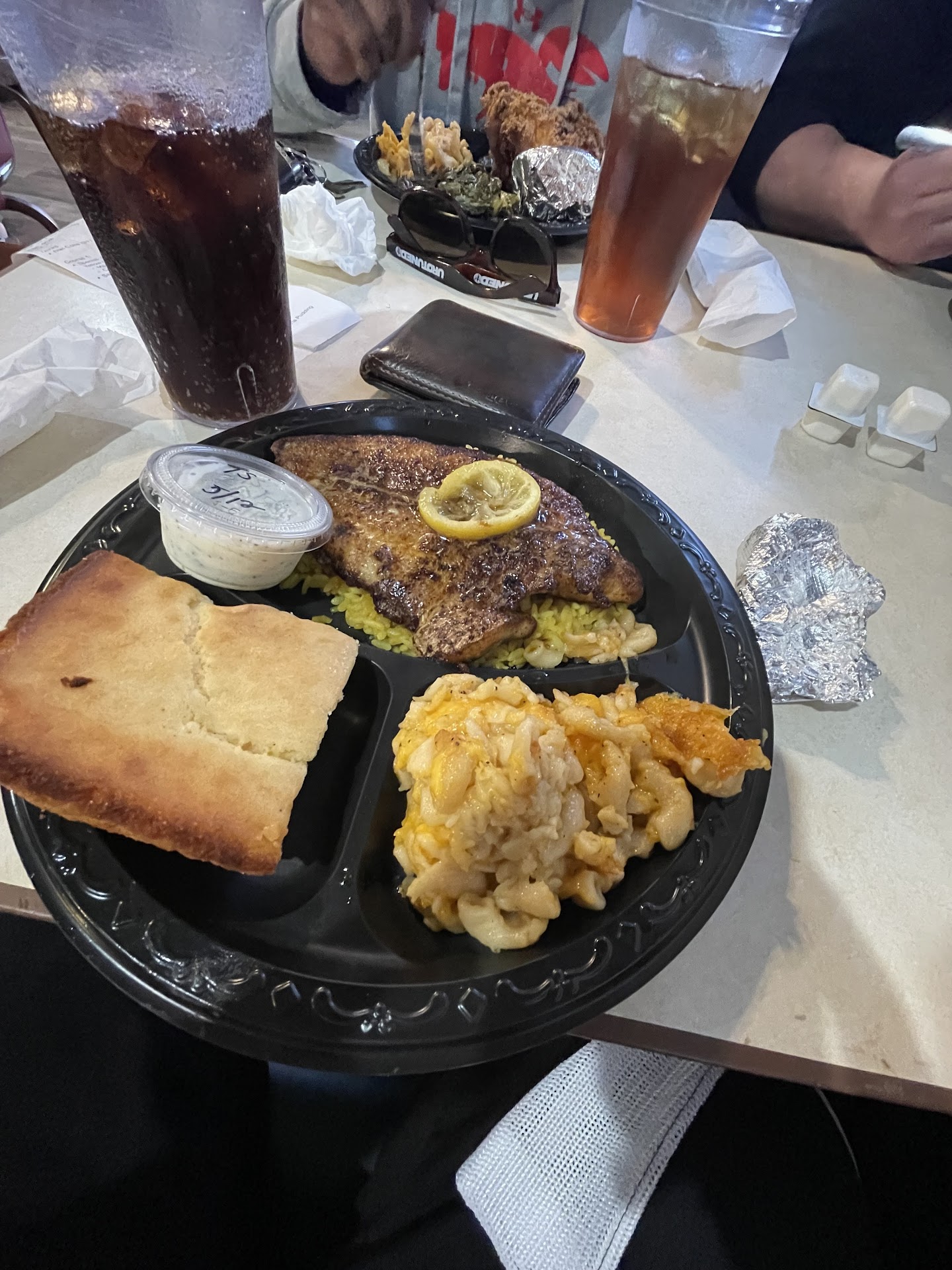 What happened? We ordered the Thanksgiving side dishes. Small Mac n cheese $30.00 of overcooked noodles with cheese tossed on top. No seasoning whatsoever. Rubbery, squishy noodles are not good. Small Green Beans $20.00 for an opened can of beans left cooking in their own water. Again, no seasoning and overcooked Small Cornbread Dressing, $20.00 of sticky paste in a pan. I've made Cornbread dressing and it didn't look like that. It was gummy and we could not eat it. Small Gravy $6.00 Never got that, they ran short (even though we pre-ordered 2 weeks in advance) and it wasn't ever refunded back. So, $82.50 including tax for food we could not eat because it was terrible or didn't even get. That's shameful. We used to love this place, but it's gone way down in quality the past 2 months or so. Sorry, but if this isn't made right and the food quality stays low. Maybe that new cook isn't so great after all?? Then we won't go back nor suggest this...
