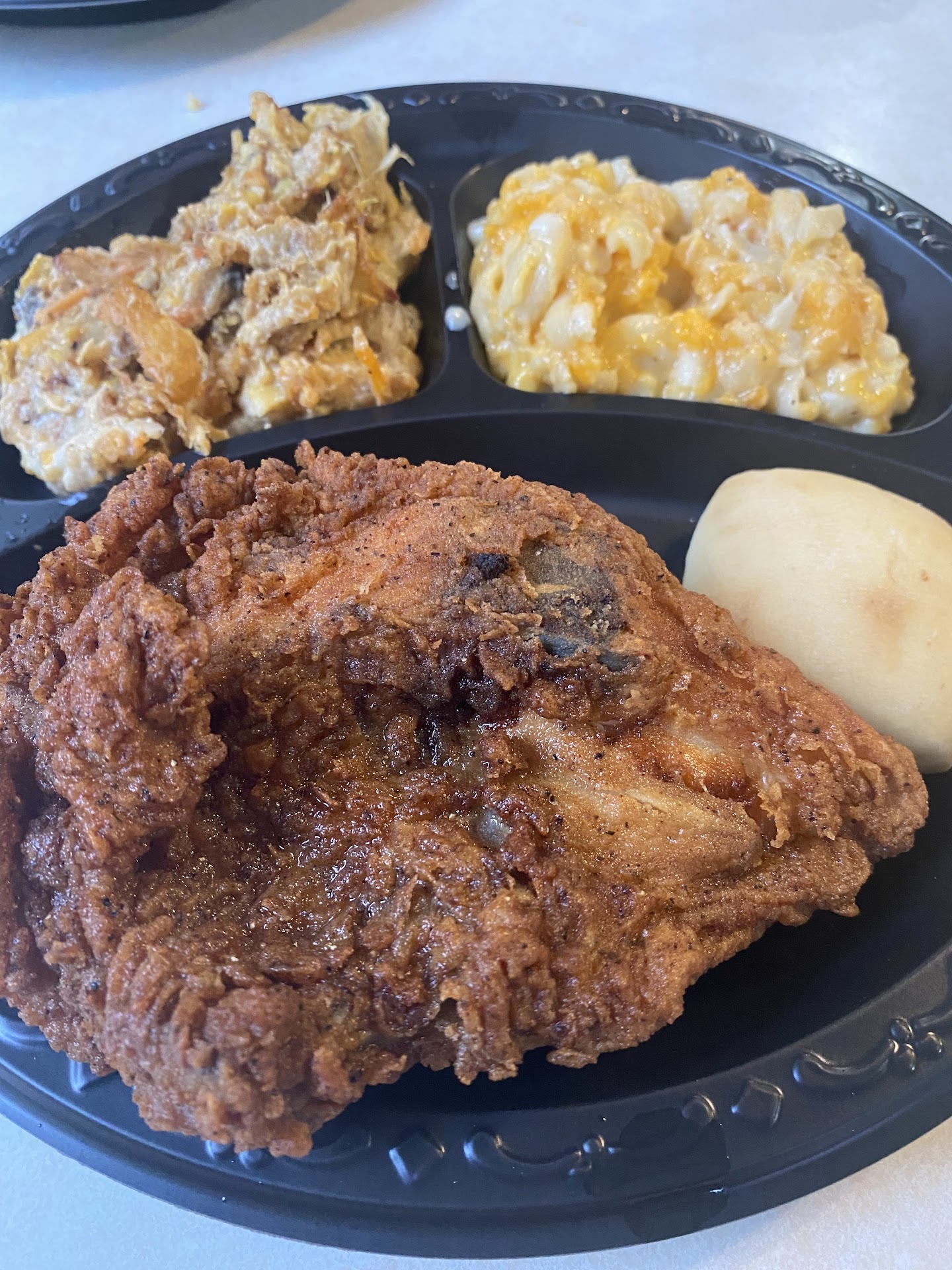 Read moreI don't understand the ratings, this is amish bland food at best. If you want real soul food go to Soul Food of Buford. This place lacks flavor, flavor and more flavor. Even the peach cobbler made with canned peaches was bland. For the price $18 with tip for 1 chicken breast, 3 tiny hush puppies, a piece of corn bread and the cobbler (no drink) I got robbed. They didn't even get my order correct and there were only 3 other tables with couples. It took 20 minutes to get my order then they took the whole plate back (after I took a bite of a hush puppy) for another good 5 minutes to get it right. So sad. So disappointed. I understand why there were only old white people in...