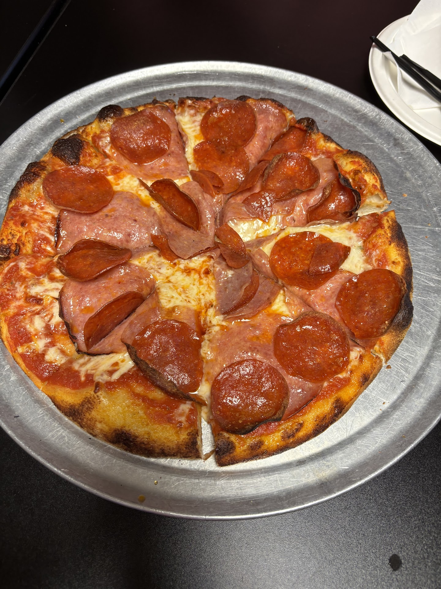 Read moreHeard great things about this location so decided to check it out. They close at 8pm, arrived at 7:10pm to place an order for one pizza. Ordered and then sat down and waited for pizza. 30 minutes go by, no pizza. Meanwhile, there is no one else seated in the restaurant. At 7:45, a guy from the back comes by and says that they got backed up because of last minute grub hub and door dash orders and that our pizza should be out shortly. Finally at 7:55pm, our pizza comes out and a different guy says that the pizza was ready earlier, but he tripped and it fell on the floor so he had to remake it. We start eating our pizza and at 8pm, the front door of the building gets locked, and the first guy from the back comes by and tells us that when we are finished, we need to walk to the back of the restaurant, past the kitchen, and exit through the back door to leave. At 8:05, he comes back and asks if we need a to-go box to take the rest of our pizza home. I felt extremely rushed, the workers were breathing down our necks to get us out of there, it was super uncomfortable. People were sweeping around our feet, the workers were blasting music in the kitchen, and banging pots and pans together to the beat of the music. This was an absolute nightmare of my sister and I just trying to hang out and grab a piece of pizza. Absolute hot mess of a place, won’t return. Do better people. Plus side, the...