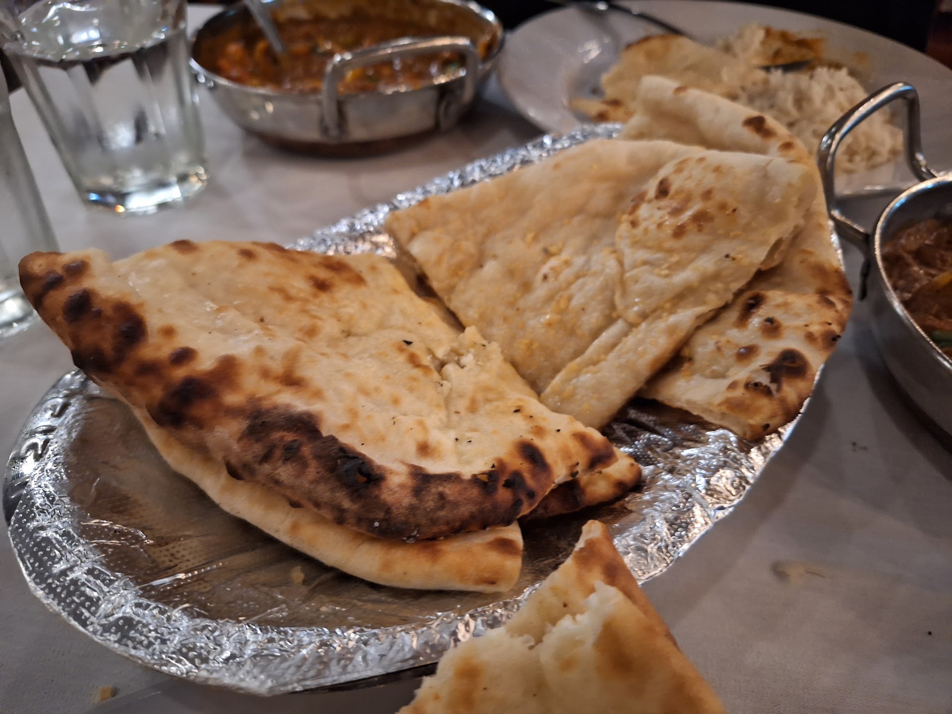 One star qualities: the price. Chicken curries are 17 dollars each, and beef / lamb entrees are 22 dollars each. This is an acceptable price for a five star restaurant, but not for an average restaurant. The naan. I imagine when it was fresh, it was delicious. However, by the time it got to me, about 7pm, it tasted microwaved. Then lastly, the wait staff. But hold on, didn't I say the wait staff was 5 stars? Well yes, i did, however I can't just ignore this part. We had six waiters and waitresses total at 7pm, and 4 tables. There was constant attention being poured on the guests, which was good, but there was a lot of overlap and it seemed very little communication between staff. We were asked the same question several times by several different wait staff.