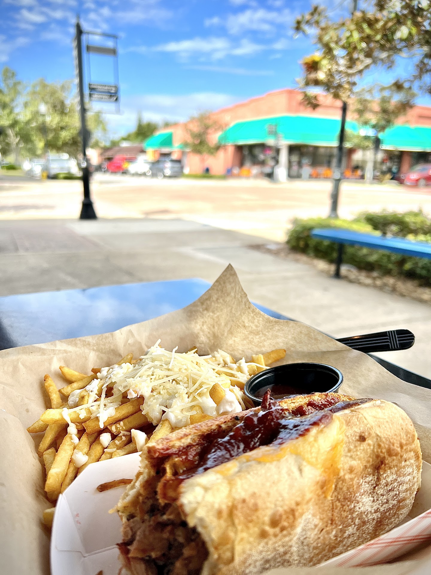 I don't eat out much, but when I do, I really enjoy good, flavorful (and whenever possible, at least somewhat healthy) food! And this was literally all that! Perfectly crisped hoagie roll, tender, juicy brisket, cheese, an amazing bbq sauce... and those special fries. ALL GOOD!!! I enjoyed every bit of my splurge for lunch (again, since I don't eat out as much as I used to in my more youthful days).