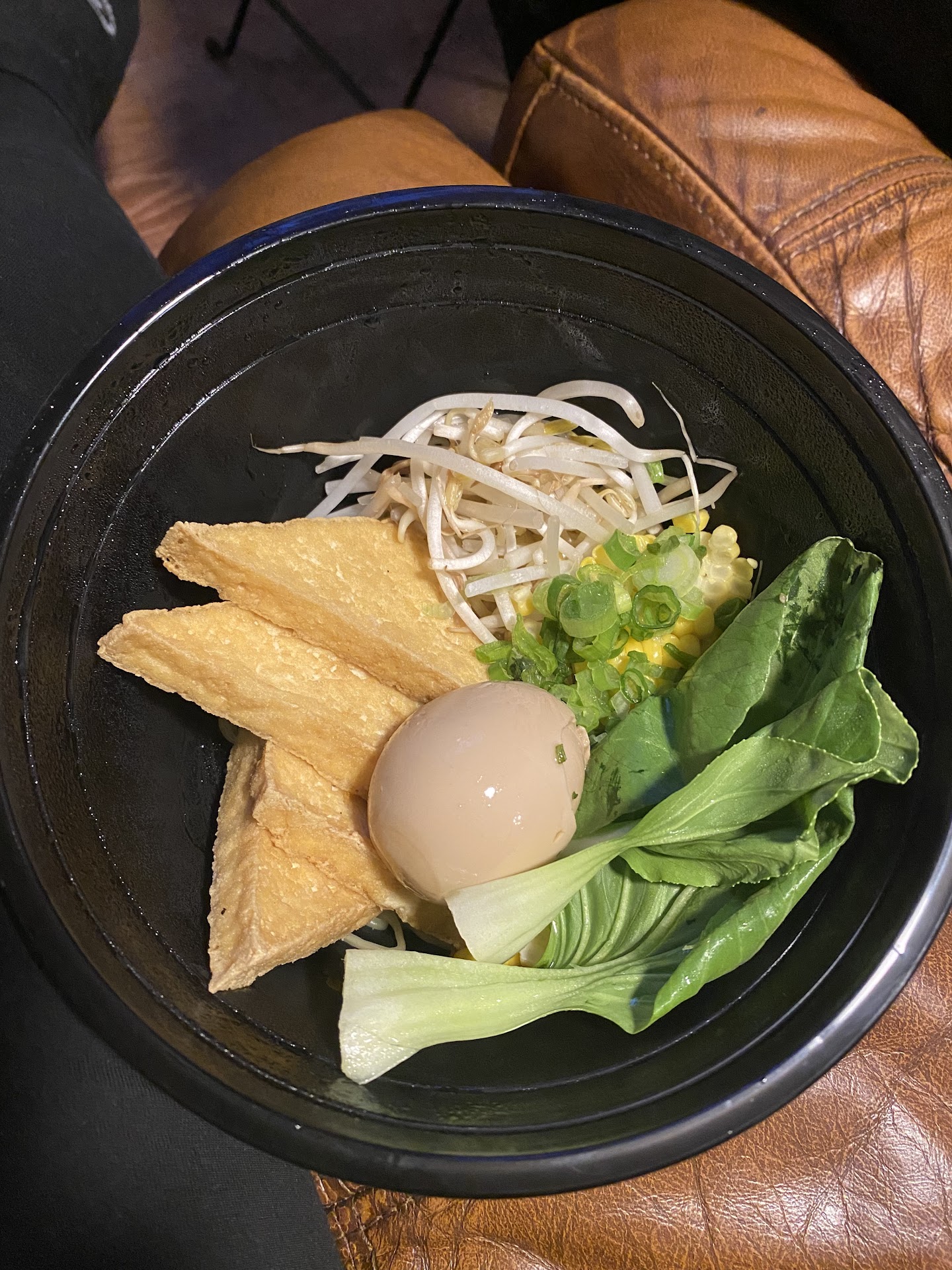 The vegan ramen- supposed to have tofu,corn,mushrooms, & bok Choy as well as I added an egg. I received a lot of very bland tofu with no salt or any flavor. A spoon full of corn & 2 pieces of bok choy, the added egg & no mushrooms. The ramen broth was flavorless and tasted like veggie broth from a box no added salt or seasoning just warm water.. the seasoned egg was okay nothing special & the noodles where all clumped together like they where just 99 cent ramen noodles from the store that where undercooked. over all 0/10 don’t recommend. prices @17$ 15$ base +2$ egg upgrade
