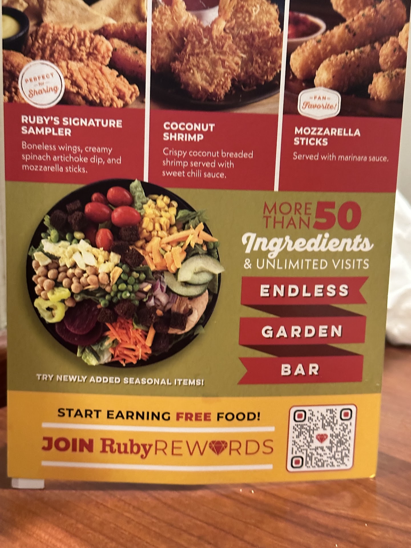 Was excited to go to a Ruby Tuesdays as the one near where I used to live had closed. We went in the early evening on the way back home from errands. It was fairly empty inside which was nice on a Saturday night. Got seated at a booth and greeted shortly by a server. So far so good.