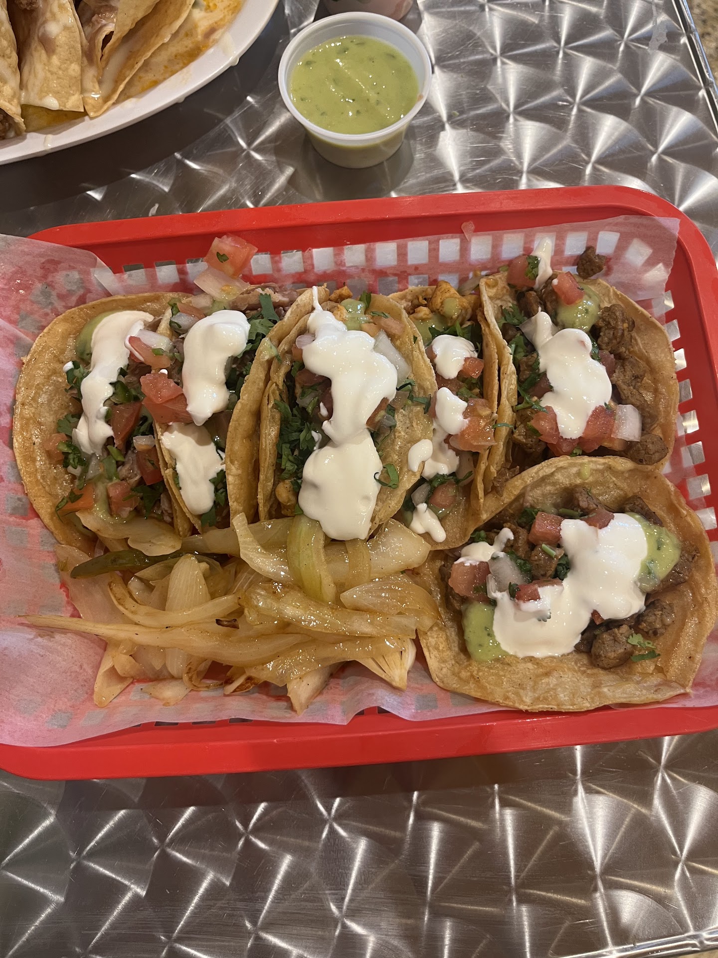 Taco Norteno is hands down the best taco place in central Florida. The food is so authentic. The atmosphere is very real and the servers are all bilingual. They are very quick to answer questions from those of us who don’t speak Spanish. That’s kind of important for a food service to be able to share their culture with us here. I love that they are receptive to all of their customers. I happened to stop by at happy hour (Monday thru Friday 4-8 pm) and they had $4 margaritas and they were amazing! They do not cheap out on the alcohol like most places do. Pictured are beef nachos which were so delicious when they were fresh but, believe it or not, were even better as the bottom layers of fresh made tortillas soaked up the cheeses and juices from the toppings. I’m not one to eat “soggy” foods so the fact that I liked these this way was a pleasant surprise. The tortillas remained somewhat firm but took on a consistency like an enchilada. So good. All the taco flavors, steak, chicken, and pork were all equally delicious. We ordered the street taco platter which is six tacos, 2, 2, and 2 of each flavor. All six for $13.99. Great price. You can add your own toppings at their vast salsa bar along with the sautéed onions they provide on the side. Overall, Taco Norteno is a fantastic place to eat real authentic Mexican food. It is now a regular for us. You must go!