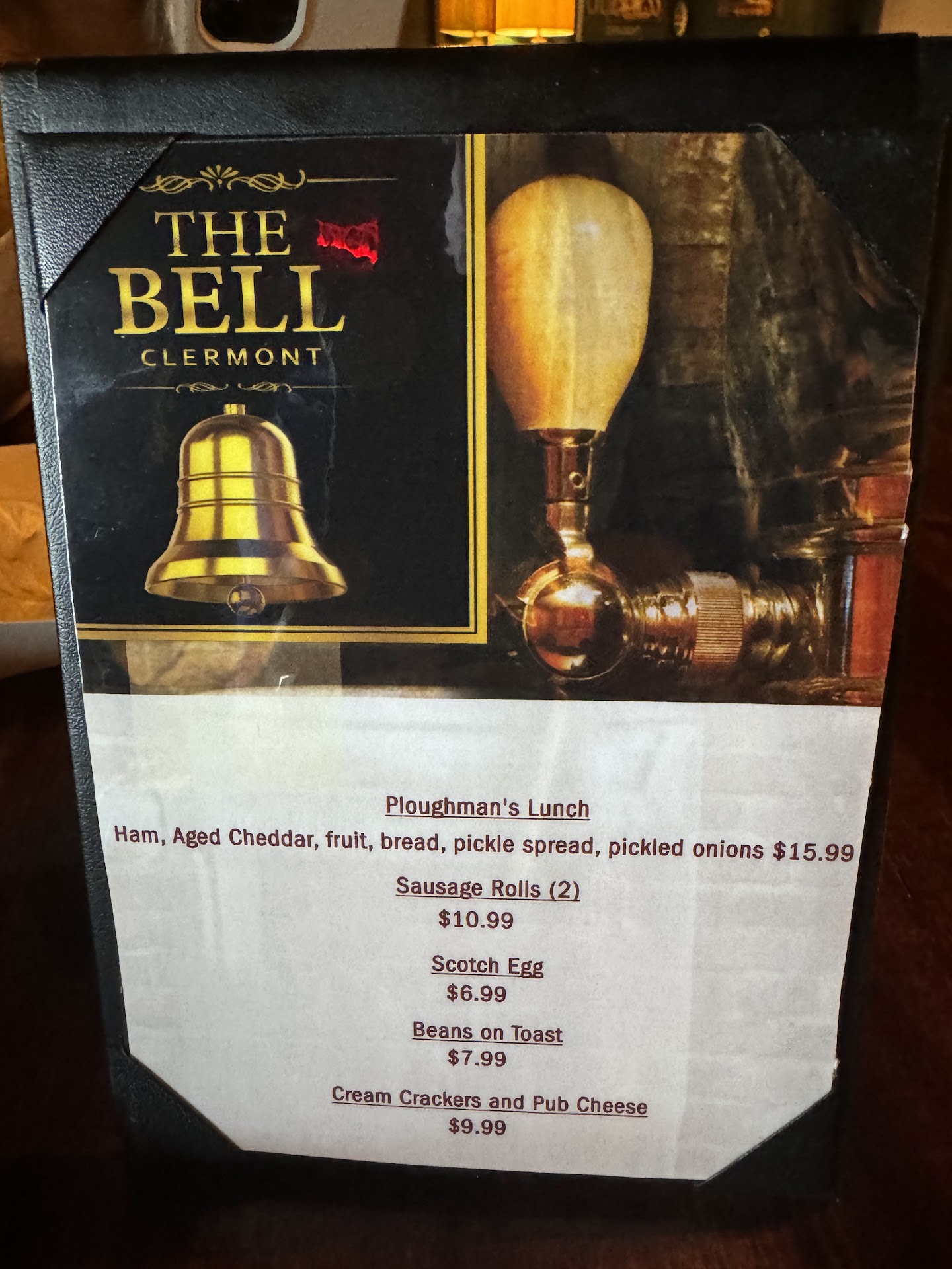 The Bell could be any local corner pub in the UK. You order from the bar and pick up your drinks there, lending more to a gathering place than a sit-down-at-the-bar-and-hang-out-all-day vibe. They have a small limited menu for food, featuring the typical British Ploughman's lunch, sausage rolls, scotch eggs, beans on toast, etc.