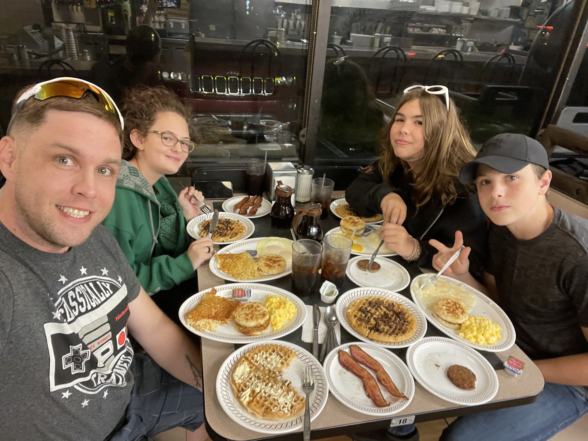 Read moreWe came to this location on 5/23/21 since we were in the area but we live 1.5 hours away. I am trying to figure out how our bill came to $65 for four people, two being kids. I'm starting to think the server over charged us. I should have looked over the bill better and taken a picture of both it and the menu. We ordered 3 All Stars, 1 with a pecan waffle, a 2 egg breakfast (2 eggs, hashbrowns and biscuit), sausage gravy, double order of hashbrowns- All the way, 2 teas, 1 soda and 1 Oj. Waffle house really needs to get with the times and get a better order and ticket system. With the server having to call out the orders and the cooks having to remember the whole order there's to much room for error. We even didnt get all our food. Plus it would help customers be able to understand their bill and not have to figure out what the server wrote. My daughter never got her waffle and we ended up finally getting it to-go. The server was nice and all but the only one that seemed to be serving while the other two did other things, so she was all over the place but never checked on us after delivering our food. The food was good and had I not had the above issues with the bill not adding up to me and the missing waffle I would have rated it...