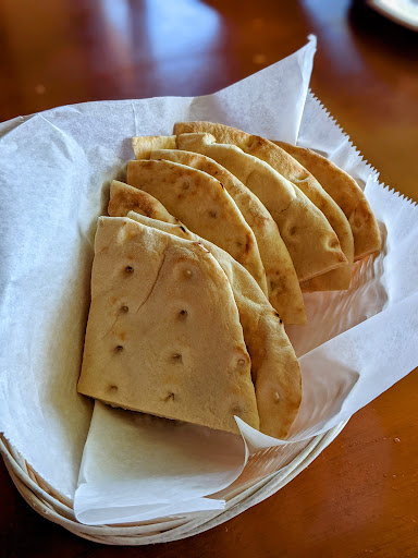 Anatolia Cafe offers outside dining in front of the restaurant with a decorative wrought iron fence separating the diners from the public sidewalk. Part of the outside dining is covered. When you walk in the entrance, you come upon the hostess station/carryout counter. There is, also, a refrigerated display case with packaged desserts and cans of soda and packages of Pita bread. Behind this display counter is the kitchen. If you turn right from this display counter, you enter the main dining area. There are several separate dining areas in this space of various sizes separated by wrought iron knee walls. The largest dining space here - the farthest north - has a fireplace at the west end and a baby grand piano along the north wall. The wall facing Lee Road has windows the entire length overlooking the outdoor dining space. If you turn left from the hostess station you enter another large open dining room. As you enter this space there is a long bar running east to west to your right. The remainder of the space is for dining. To get to the south end of this dining area there are two steps to climb. The rest of the restaurant and the restrooms are wheelchair accessible. The bar top is above wheelchair height. The restrooms are located in a hallway off the north dining area. The restaurant and the restroom are clean.