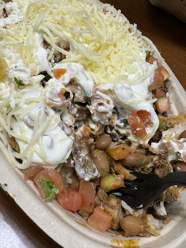Read moreIf I could give ZERO stars I would. This chipotle is such a hit or miss situation. Today they completely missed. Letâs start with the slow a*s service, you easily waiting 15 minutes before you can order, even if itâs only a couple people in front of you and thatâs EVERY time besides the off chance the place is empty when you get there. Second, they were out of both chickens so I had to pay extra for barbacoa, green salsa, chips, and when I asked for extra cheese they told me I couldnât have it because it was the only cheese on the line. Excuse me, am I not a paying customer? The guac was literally brown so I decided not to get it. They were wrapping bowls in foil because they had no lids. The people on the line had the nastiest attitudes and cussing in front of customers, and to top it all off the food was so bland I spit it out! My meat was in big blocks with hella fat. Iâm so irritated I can write a book rn. They need to shut this location...