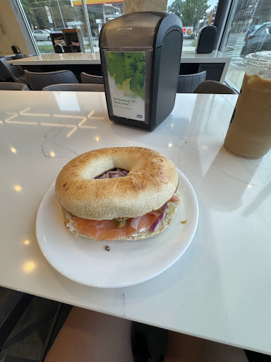 Read more10/10 - One of my new favorites! I had my food and drink within 5 minutes of ordering at their self-serve kiosk (which was nice for someone like me who had never visited before). I got the Lox bagel and added onion and olives to it and OMG! So good I scarfed it down. My beverage was an iced latte with oatmilk and SF vanilla, also fantastic!