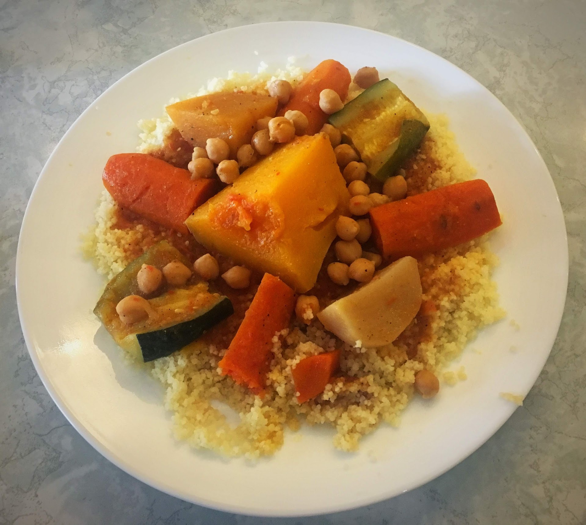 I enjoyed the beef platter which is served with a small Mediterrian salad, rice, vegetables, and a small side dish of harissa - a Moroccan hot sauce. Plus, you receive an order of Kesra - a whole wheat brown bread made with a touch of wheat germ. The meal is very good. I especially enjoyed the flavor of the grilled vegetables, rice and harissa. The Kesra is tasty too. I used it to "mop up" the salad dressing after I finished my salad and the flavorful juices remaining on my grilled beef platter. No butter is served with bread - no need for butter - since the cooking juices are a flavorful "dip" for the bread.