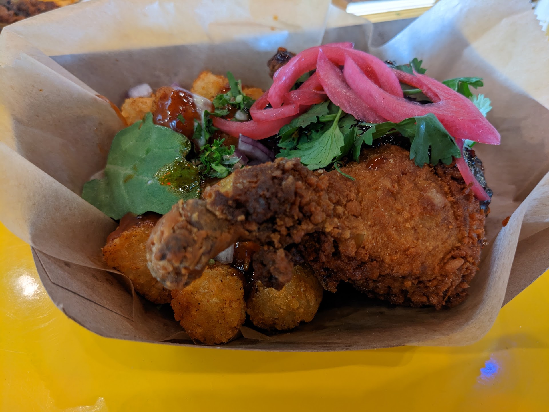 This meal left us speechless (in the best way!). The chef/owner (Rasul) helped us out when we were indecisive about what to order - what resulted was a smorgasbord of the most flavorsome and creative entrees and sides we've had probably anywhere in Cleveland (and the fact that it's located within Bottlehouse is just the cherry on top). We tried the bucket of Bhajji (fried chicken - SO crisp), desi burger, chaat tots, pickled deviled eggs, and a rice/veggie dish - all had a unique Indian soul twist and went so well together. Our party of 4 had plenty of leftovers too and we can't wait to enjoy this meal all over again.