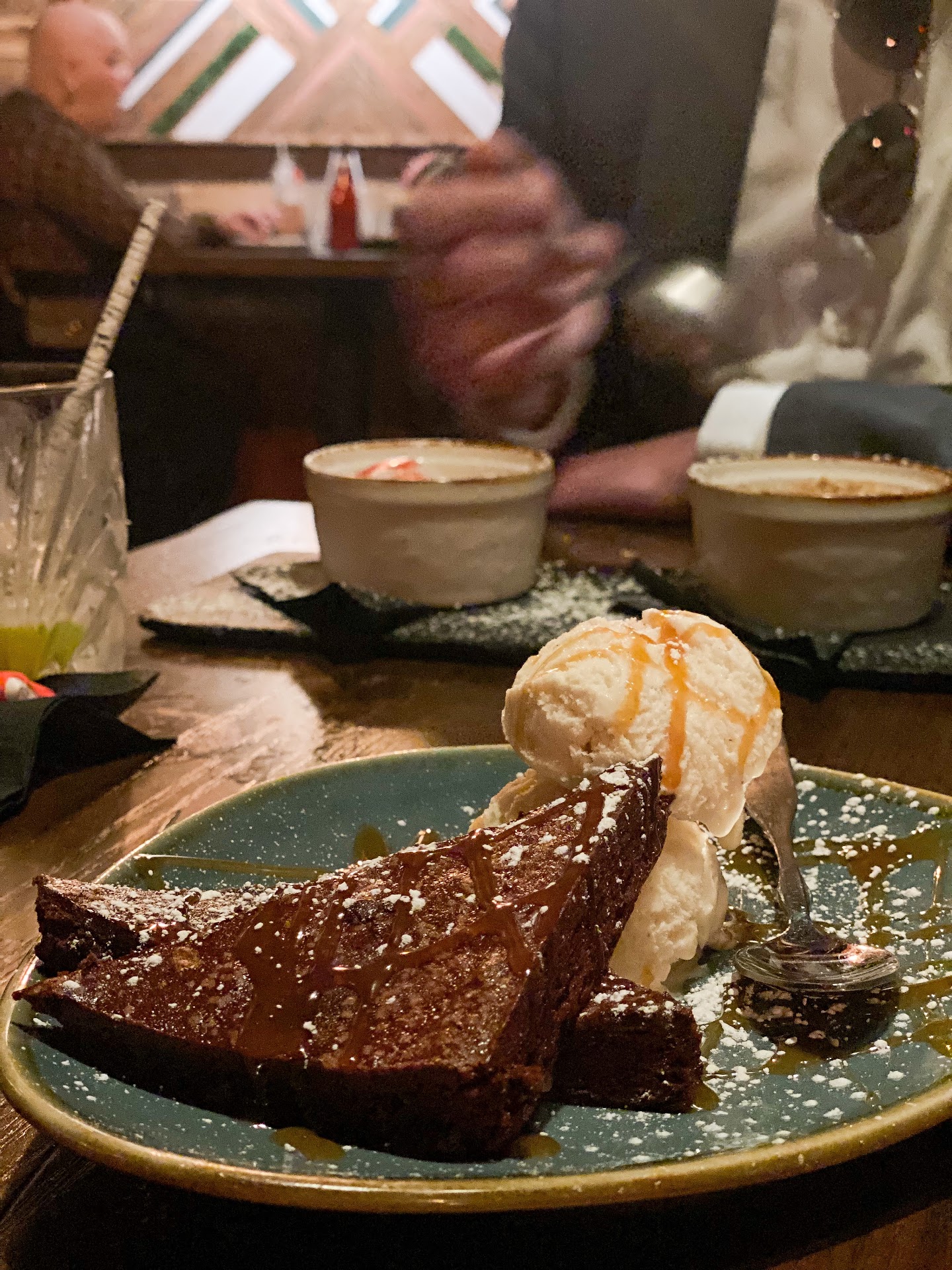 We ordered a couple of cocktails and a chicken and shrimp taco. The cocktails were executed perfectly in a short amount of time and were excellent. The tacos took longer than our bartender preferred so he dropped off a complimentary Kung Pao appetizer to make our wait pleasant and they were delicious. Shortly after, the tacos came out and were wonderful, perfectly cooked with great flavors.