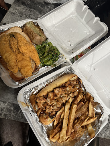 I placed my order for 2 on door dash. It was ready a few minutes earlier than expected. I ordered the vegetarian loaded baked potato. It was very large with butter, cheese, broccoli, mushrooms, zucchini squash, peppers, and onions. It came with a side of sour cream. I also ordered the salmon burger which came with lettuce, tomatoes, onions, and a very good sauce on the side. It came with fries as well. Everything was good, but I could have taken a little more seasoning on everything. I just added some at home. My husband had a Philly sandwich with shrimp and salmon. He enjoyed it also adding seasoning at home. I would definitely recommend this establishment and will be returning very soon to try...