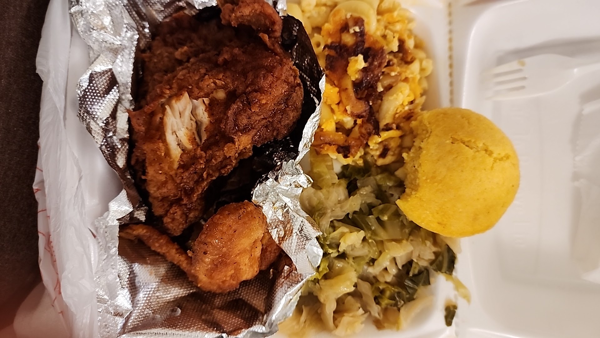 Round 2, August 2021: ordered the chicken wing dinner this time. Got 5 whole wings that were fried crispy like my grandma used to. My two sides were the macaroni and cheese along with the cabbage. Everything tasted good and was reasonably priced. The chicken could've used more pronounced seasoning (perhaps a pinch more of seasoned salt), but was alright after applying hot sauce. The texture was just right crispy on the outside and juicy meat on the inside.